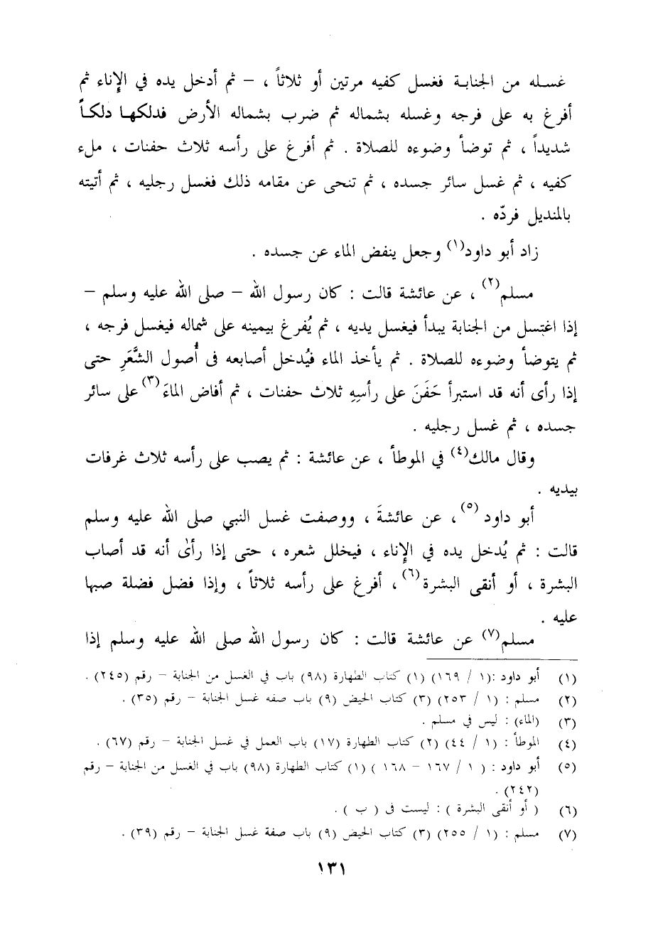 (¬5) أبو داود (1/ 167 - 168) (1) كتاب الطهارة (98) باب في الغسل من الجنابة - رقم (242).