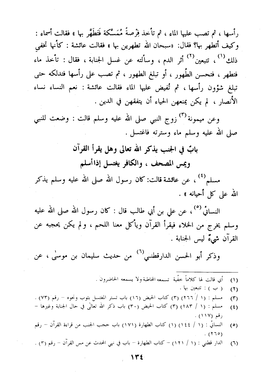 (¬4) مسلم: (1/ 283، (3) كتاب الحيض (30) باب ذكر الله تعالى في حال الجنابة وغيرها - رقم (117).