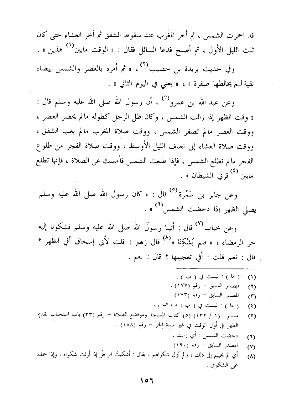 (¬5) مسلم: (1/ 432) (5) كتاب المساجد ومواضع الصلاة - رقم (33) باب استحباب تقديم الظهر في أول الوقت في غير شدة الحر - رقم (188).