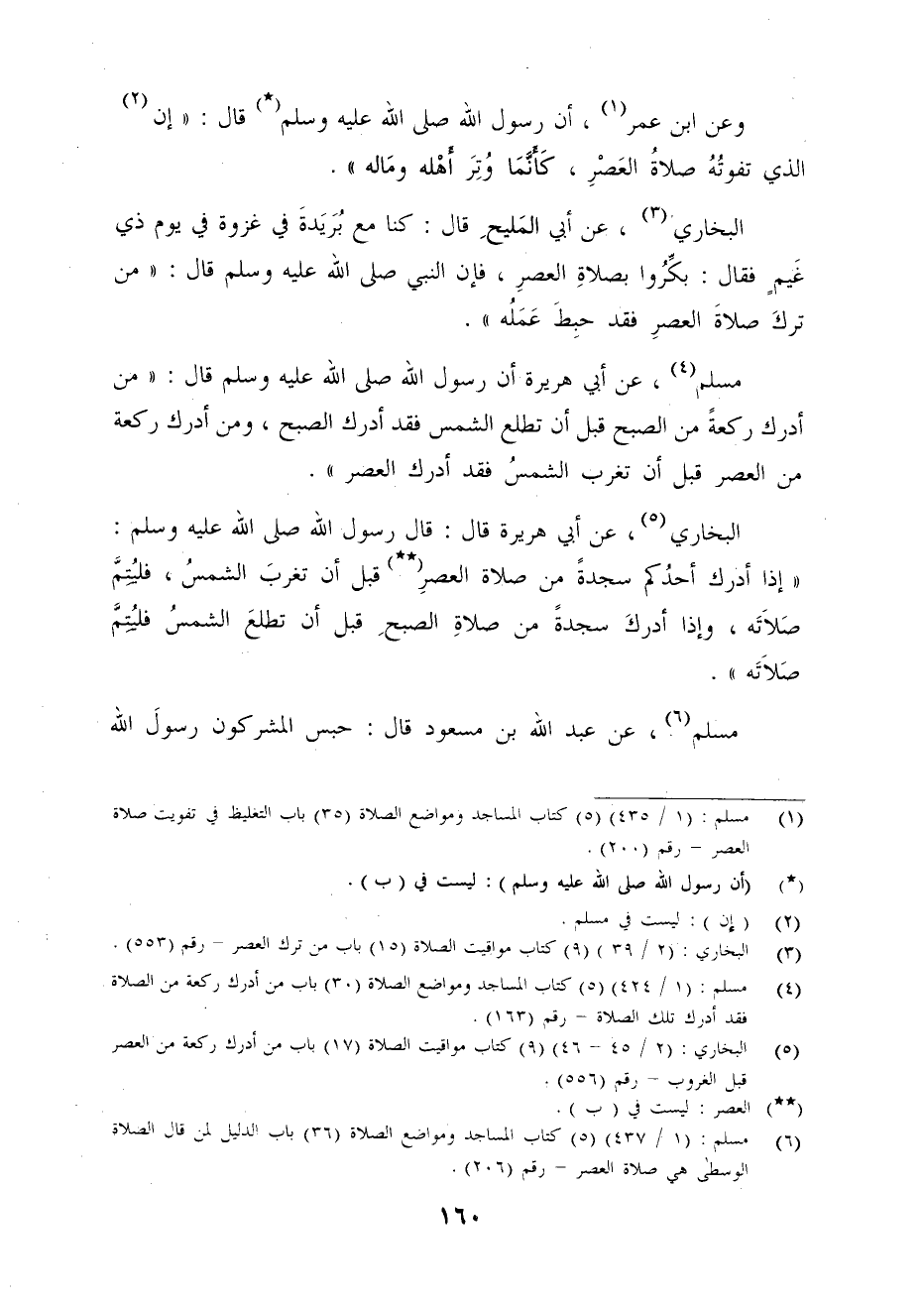 (¬6) مسلم: (1/ 437) (5) كتاب المساجد ومواضع الصلاة (36) باب الدليل لمن قال الصلاة الوسطى هي صلاة العصر - رقم (206).