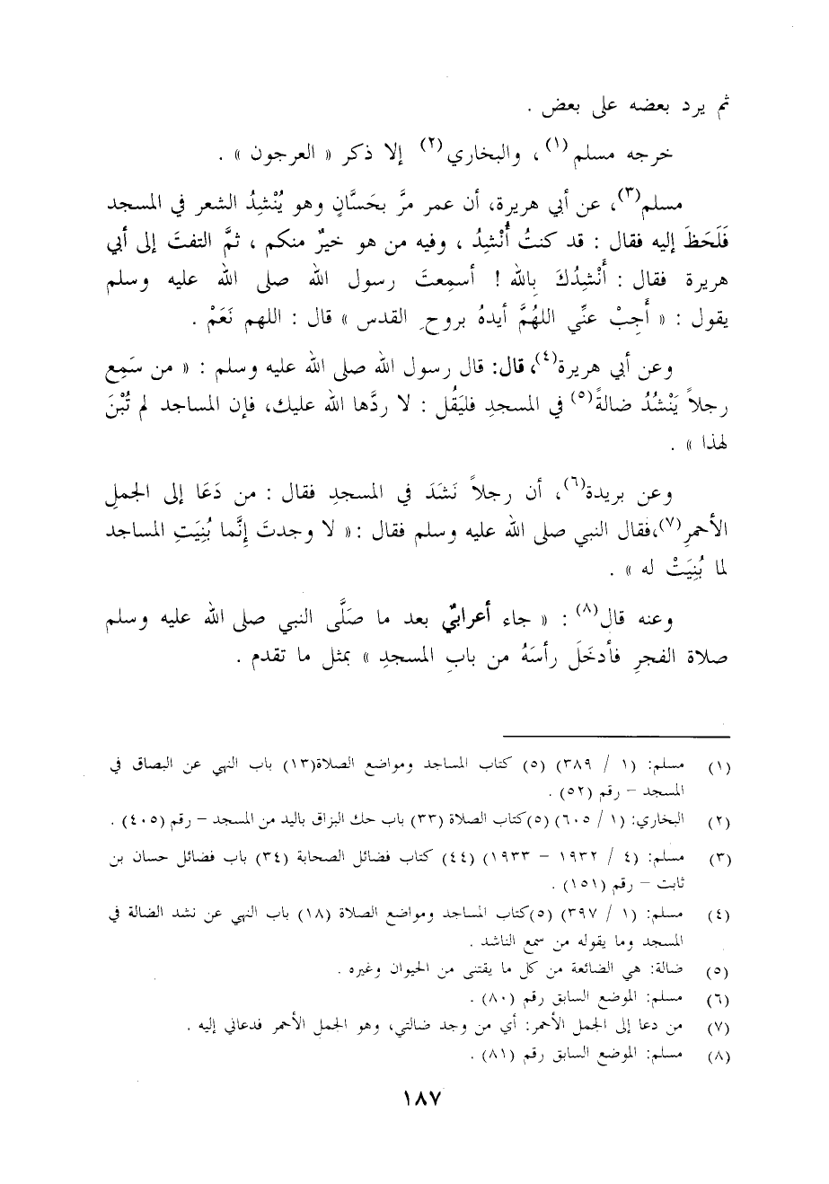 (¬4) مسلم (1/ 367) (5) كتاب المساجد ومواضع الصلاة (18) باب النهى عن نشد الضالة في المسجد وما يقوله من سمع الناشد.