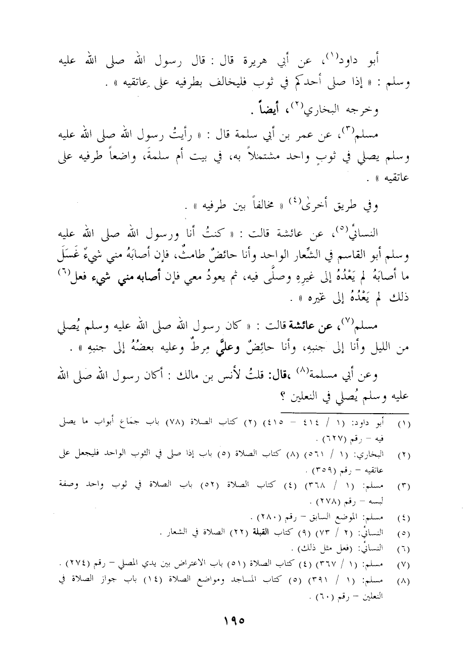 (¬8) مسلم: (1/ 391) (5) كتاب المساجد ومواضع الصلاة (14) باب جواز الصلاة في النعلين - رقم (60).