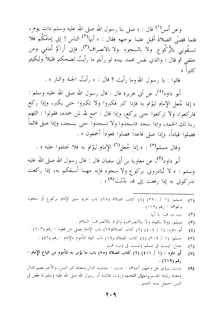 (¬7) أبو داود: (1/ 411) (2) كتاب الصلاة (75) باب ما يؤمر به المأموم من اتباع الإِمام - رقم (619).