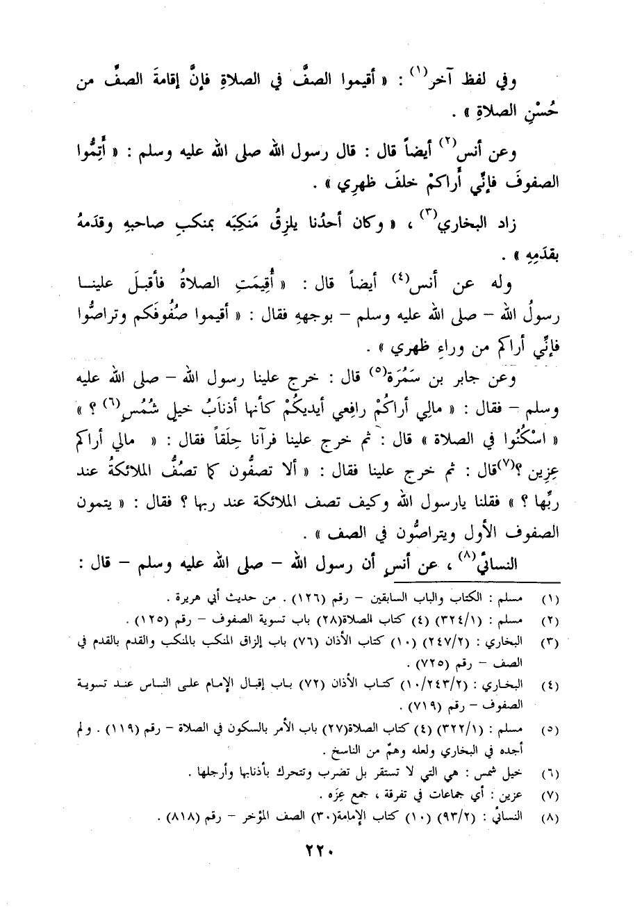 (¬2) مسلم: (1/ 324) (4) كتاب الصلاة (28) باب تسوية الصفوف - رقم (125).