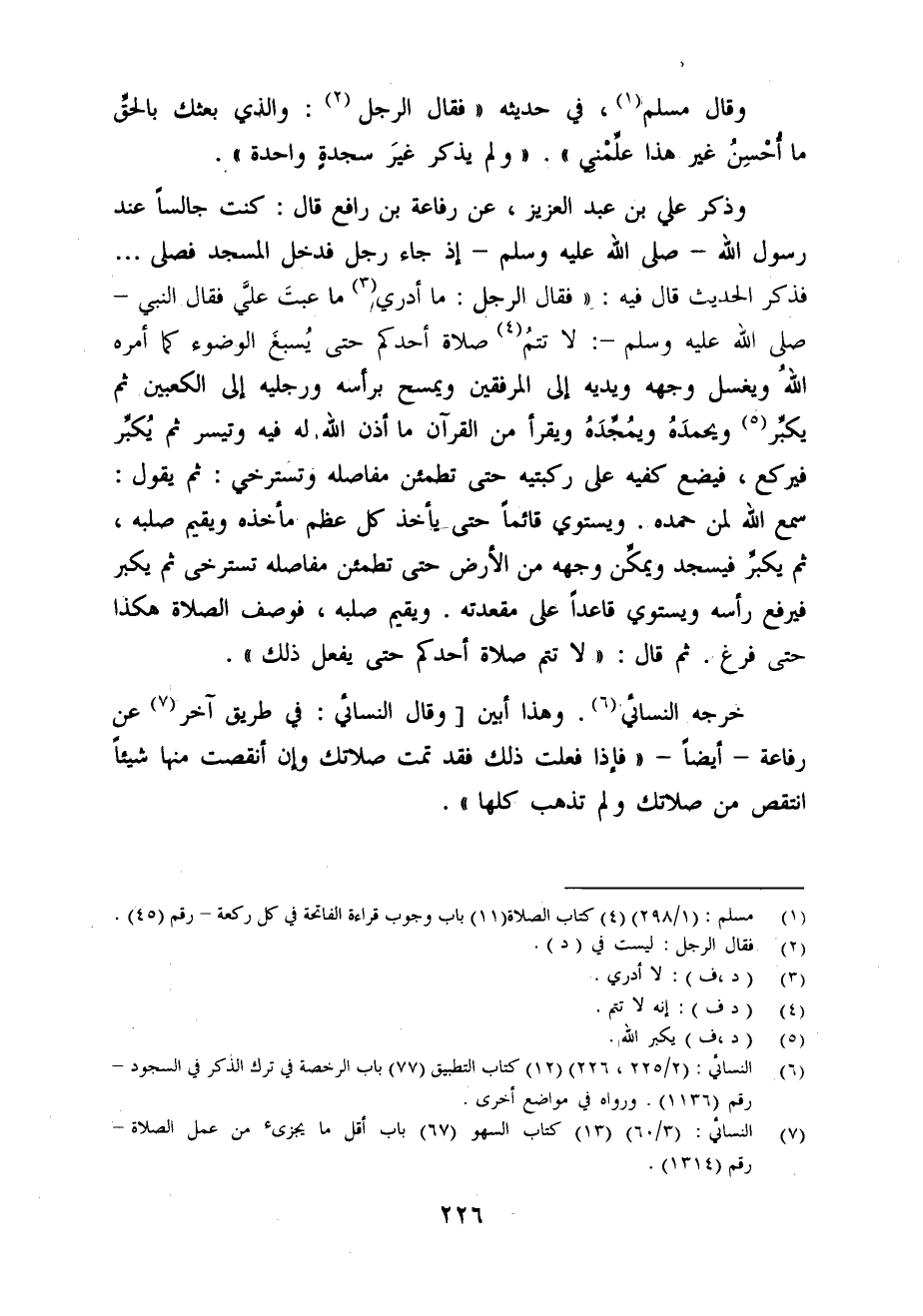 (¬7) النسائي: (3/ 60) (13) كتاب السهو (67) باب أقل ما يجزئ من عمل الصلاة - رقم (1314).