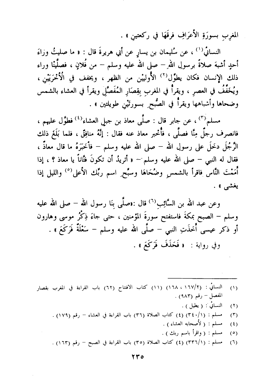 (¬6) مسلم: (1/ 336) (4) كتاب الصلاة (35) باب القراءة في الصبح - رقم (163).