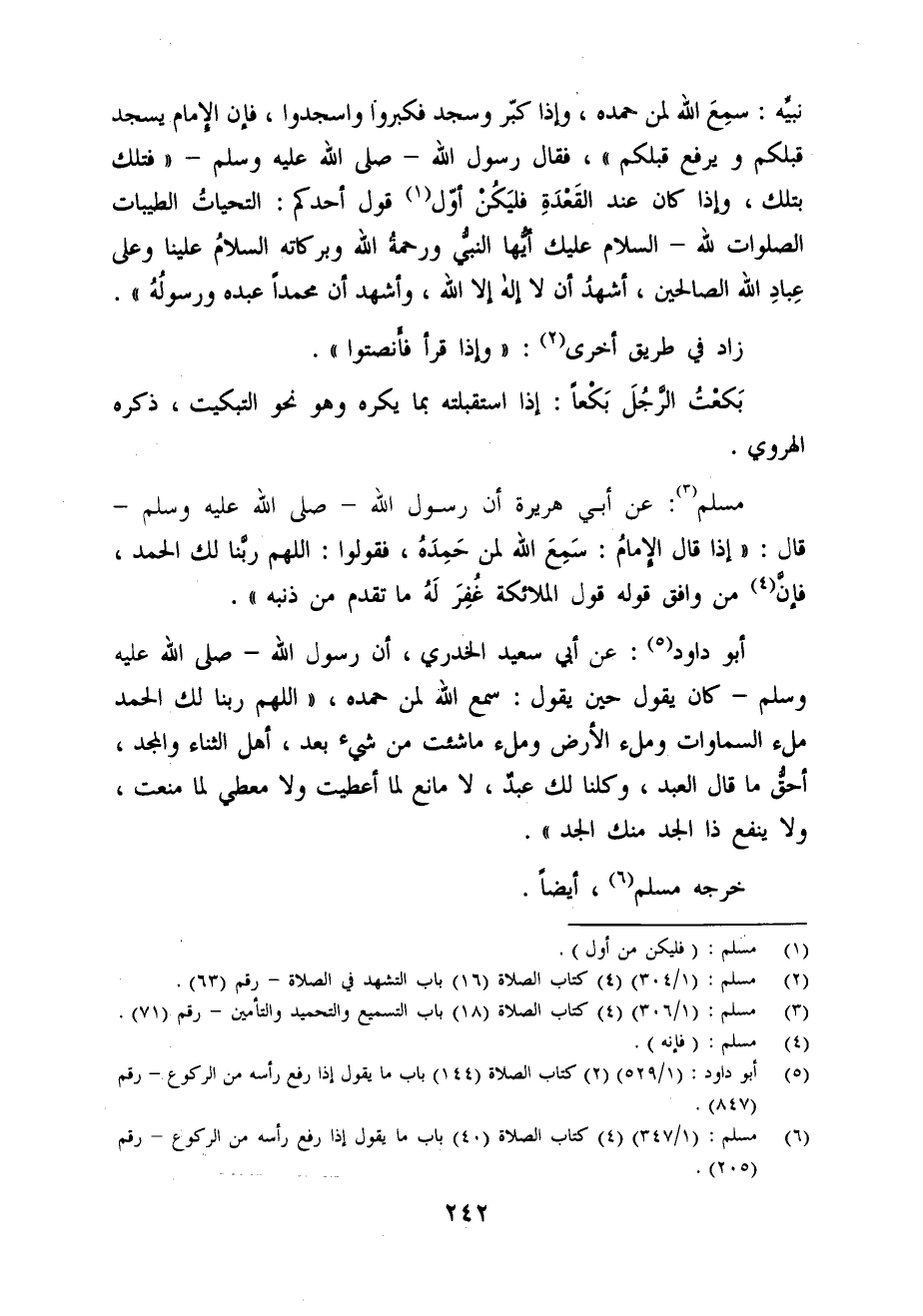 (¬6) مسلم: (1/ 347) (4) كتاب الصلاة (40) باب ما يقول إذا رفع رأسه من الركوع - رقم (205).
