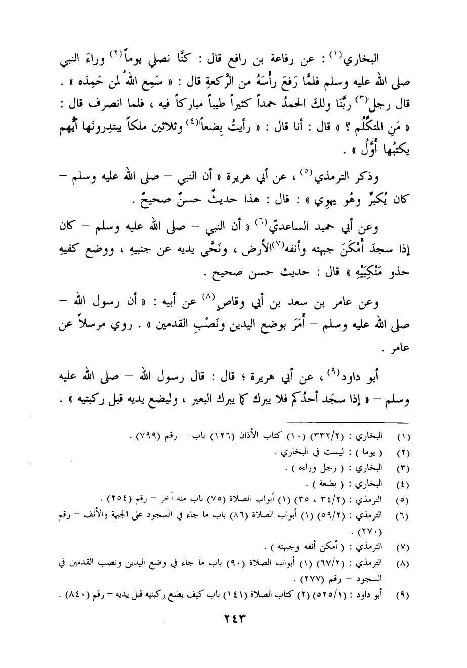 (¬6) الترمذي: (2/ 59) (1) أبواب الصلاة (86) باب ما جاء في السجود على الجبهة والأنف - رقم (270).