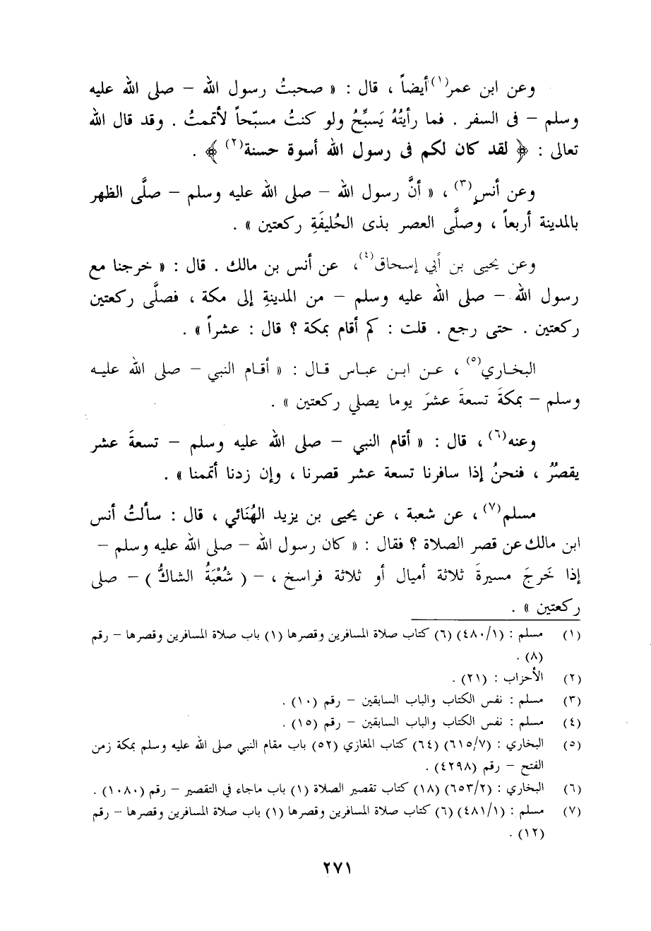 (¬7) مسلم: (1/ 481) (6) كتاب صلاة المسافرين وقصرها (1) باب صلاة المسافرين وقصرها - رقم (12).