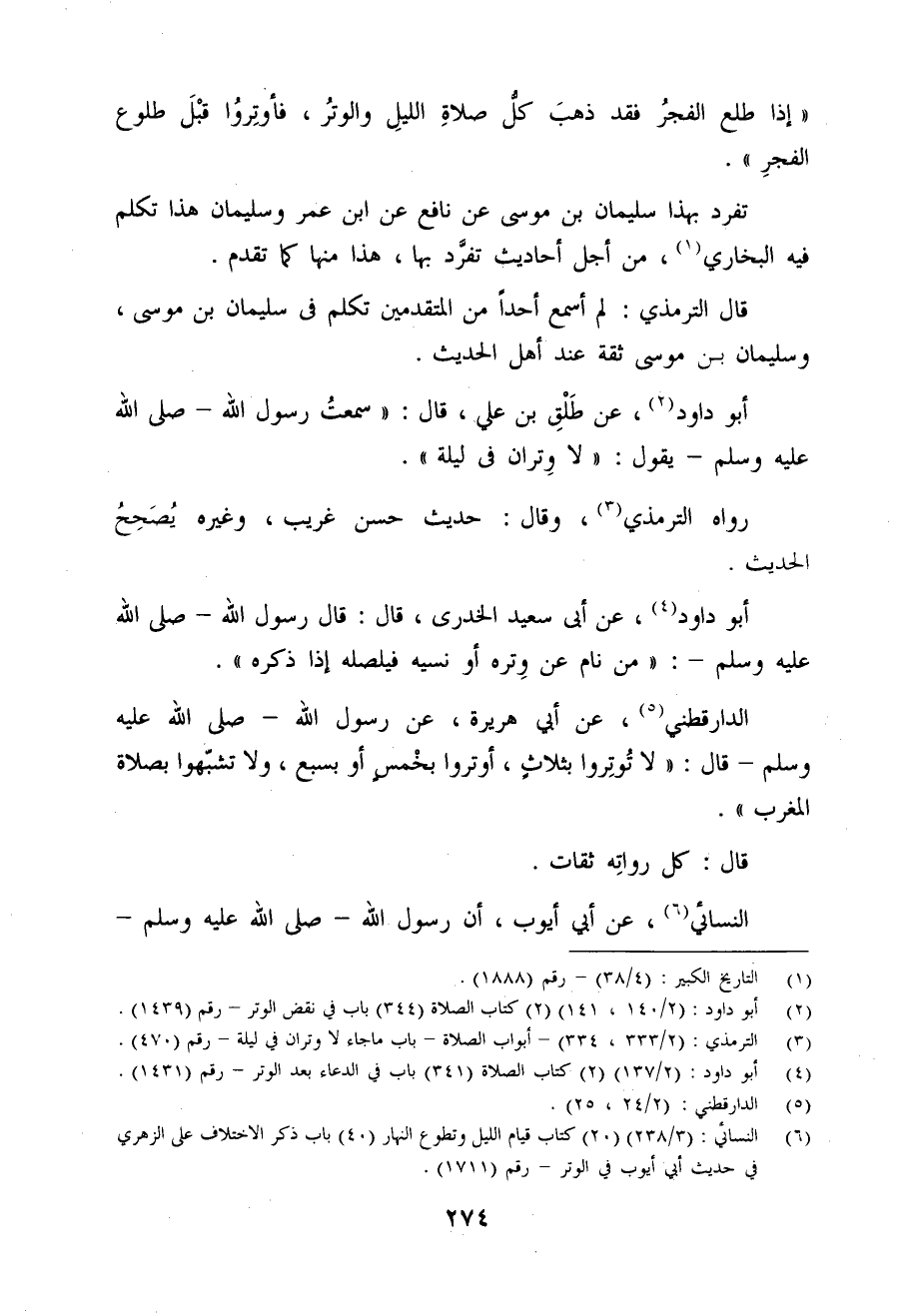 (¬6) النسائي: (3/ 238) (20) كتاب قيام الليل وتطوع النهار (40) باب ذكر الاختلاف على الزهري في حديث أبي أيوب في الوتر - رقم (1711).