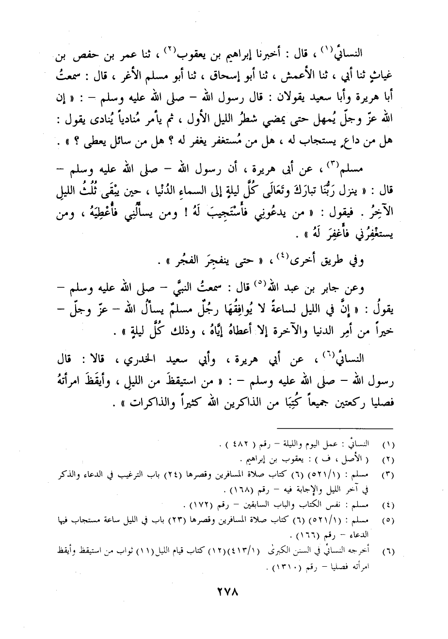 (¬3) مسلم: (1/ 521) (6) كتاب صلاة المسافرين وقصرها (24) باب الترغيب في الدعاء والذكر في آخر الليل والإجابة فيه - رقم (168).