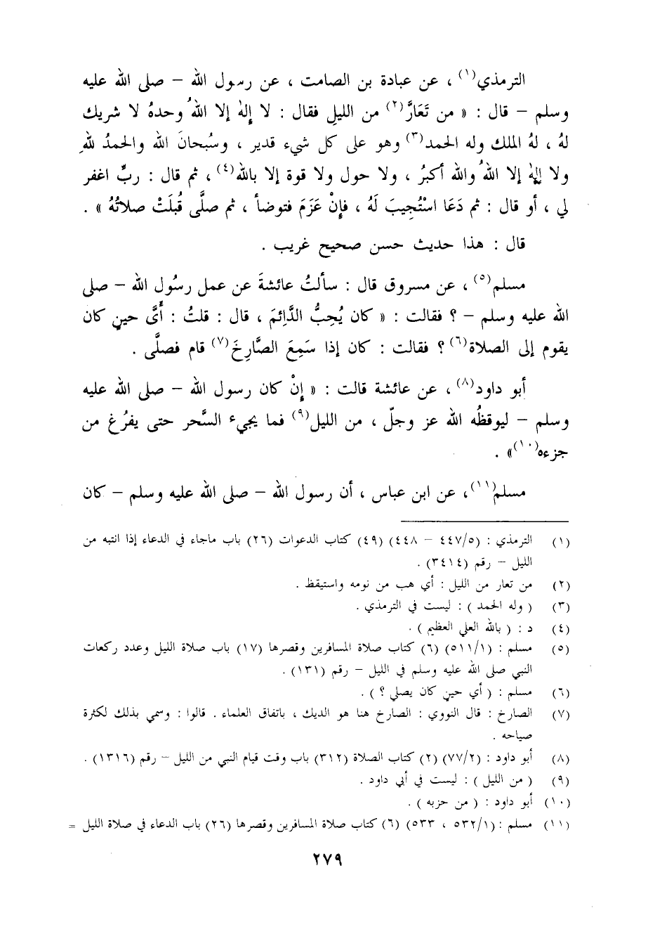 (¬11) مسلم: (1/ 532، 533) (6) كتاب صلاة المسافرين وقصرها (26) باب الدعاء في صلاة الليل =