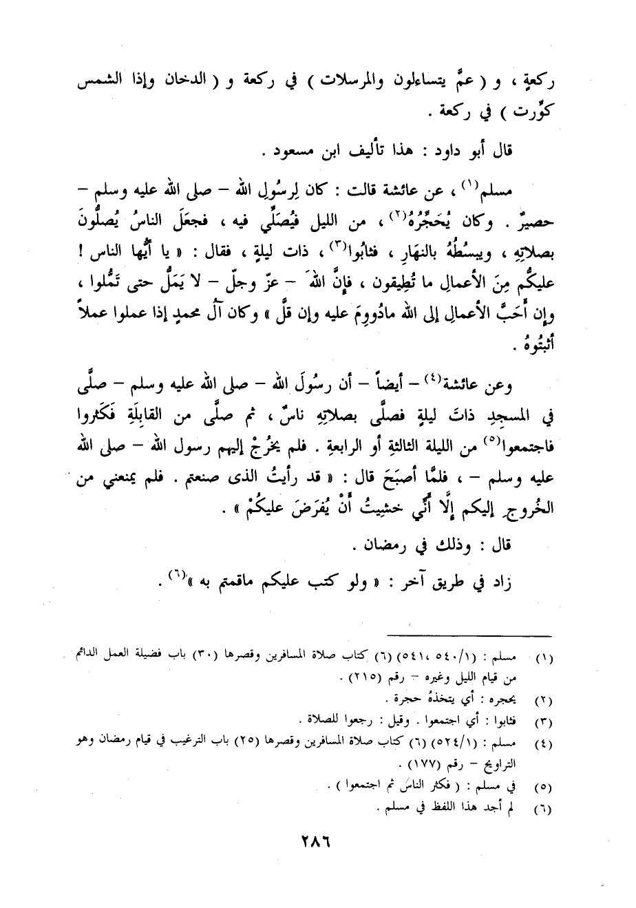(¬1) مسلم: (1/ 540، 541) (6) كتاب صلاة المسافرين وقصرها (30) باب فضيلة العمل الدائم من قيام الليل وغيره - رقم (215).
