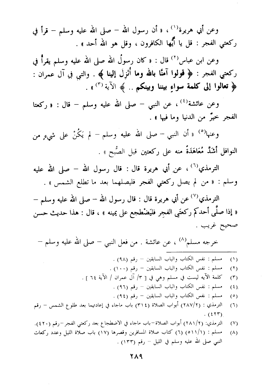 (¬7) الترمذي: (2/ 281) أبواب الصلاة - باب ما جاء في الإضطجاع بعد ركعتي الفجر - رقم (420).