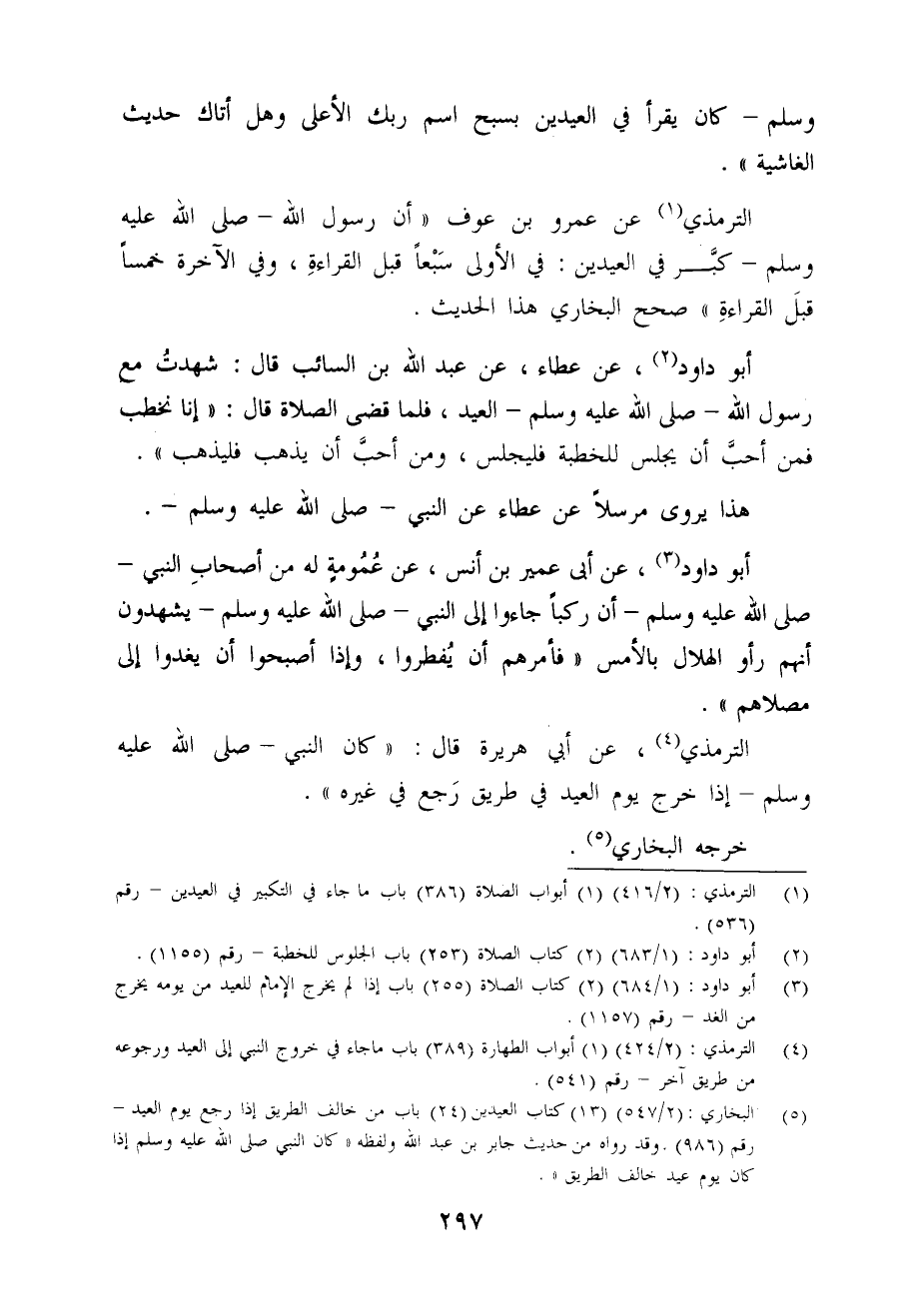 (¬4) الترمذي: (2/ 424) (1) أبواب الطهارة (389) باب ما جاء في خروج النبي إلى العيد ورجوعه من طريق آخر - رقم (541).