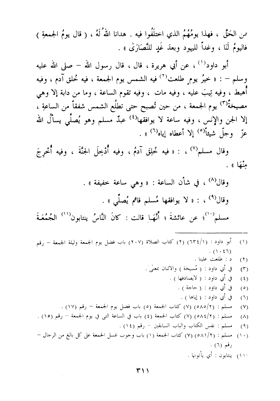 ئن الحَقِّ، فهذا يومُهُمُ الذى اختلَفُوا فيه. هدانا اللهُ لَهُ، (قال يومُ الجمعةِ)