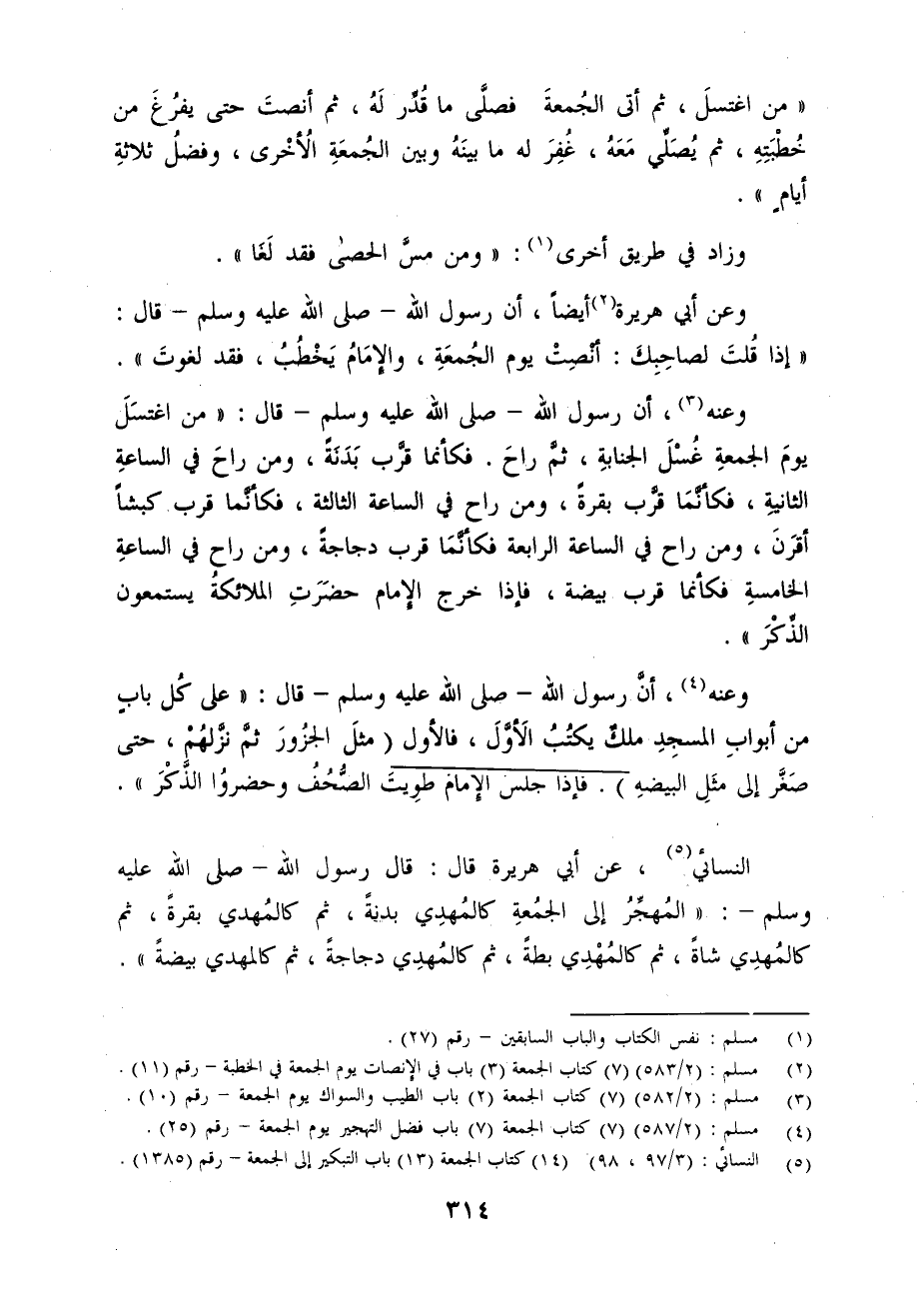 (¬4) مسلم: (2/ 587) (7) كتاب الجمعة (7) باب فضل التهجير يوم الجمعة - رقم (25).