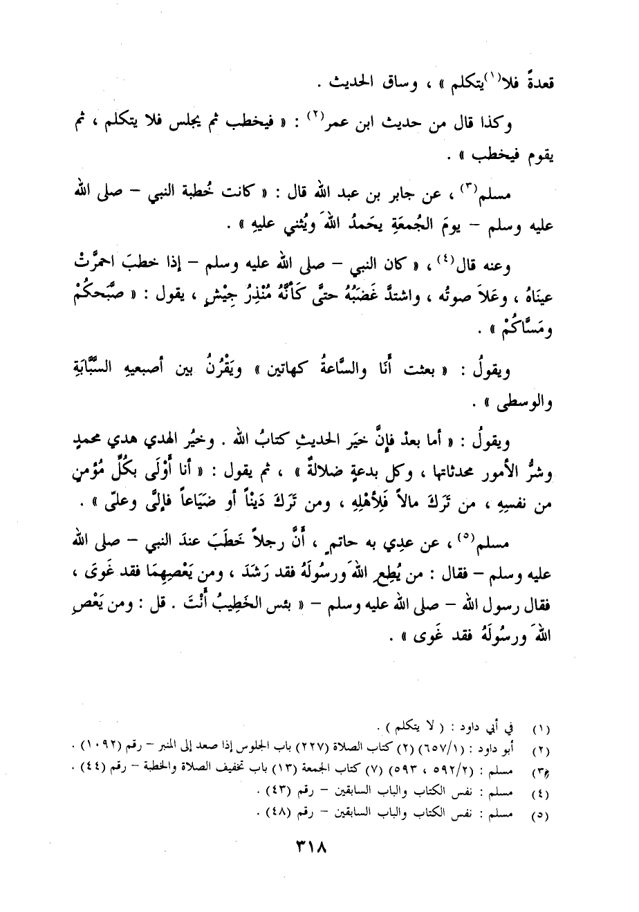 مسلم (¬3)، عن جابر بن عبد الله قال: "كانت خُطبة النبي - صلى الله عليه وسلم - يومَ الجُمعَةِ يحَمدُ الله ويُثني عليهِ".