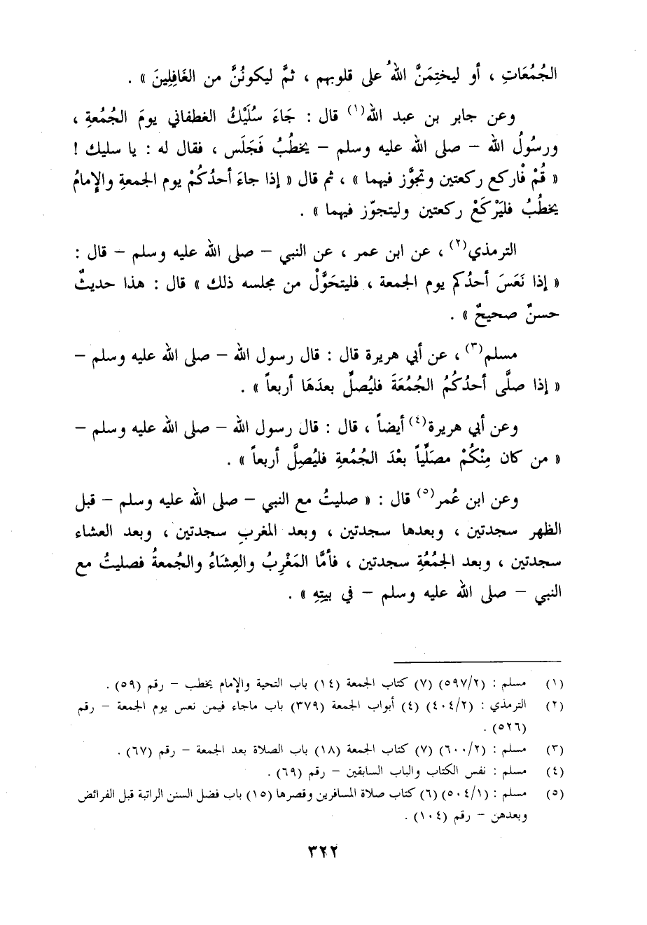 مسلم (¬3)، عن أبي هريرة قال: قال رسول الله - صلى الله عليه وسلم - "إذا صلَّى أحدُكُمُ الجُمُعَةَ فليُصل بعدَهَا أربعًا".