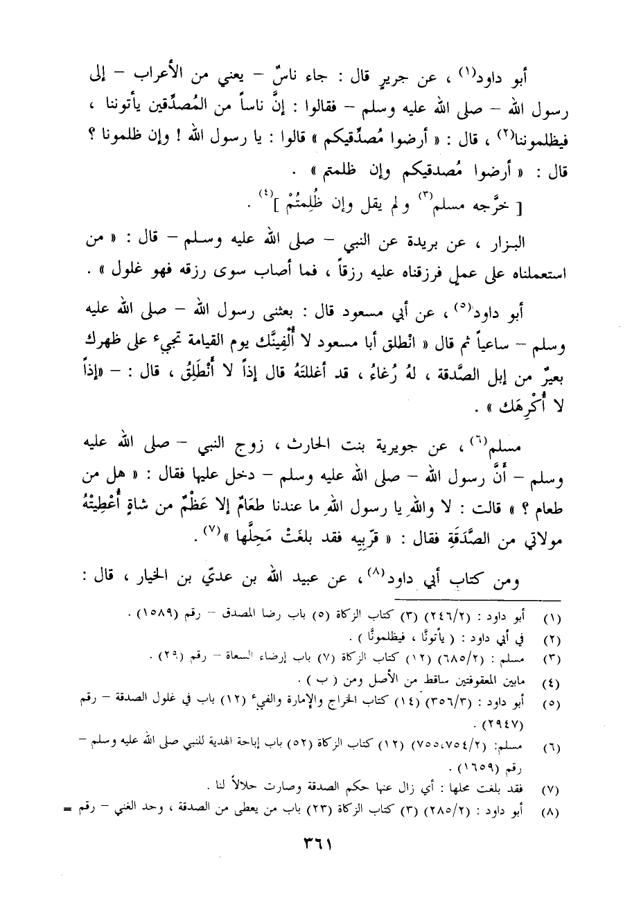 (¬5) أبو داود: (3/ 356) (14) كتاب الخراج والإمارة والفيء (12) باب في غلول الصدقة - رقم (2947).