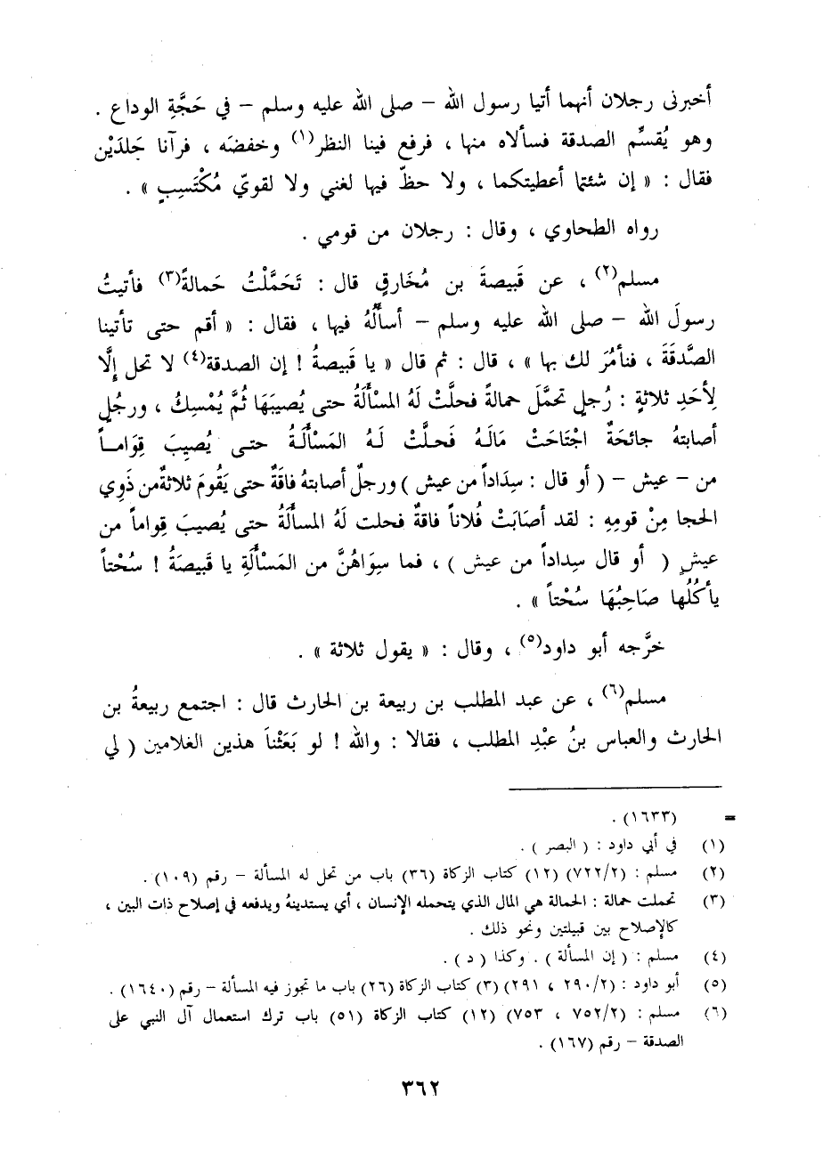 (¬2) مسلم: (2/ 722) (12) كتاب الزكاة (36) باب من تحل له المسألة - رقم (109).
