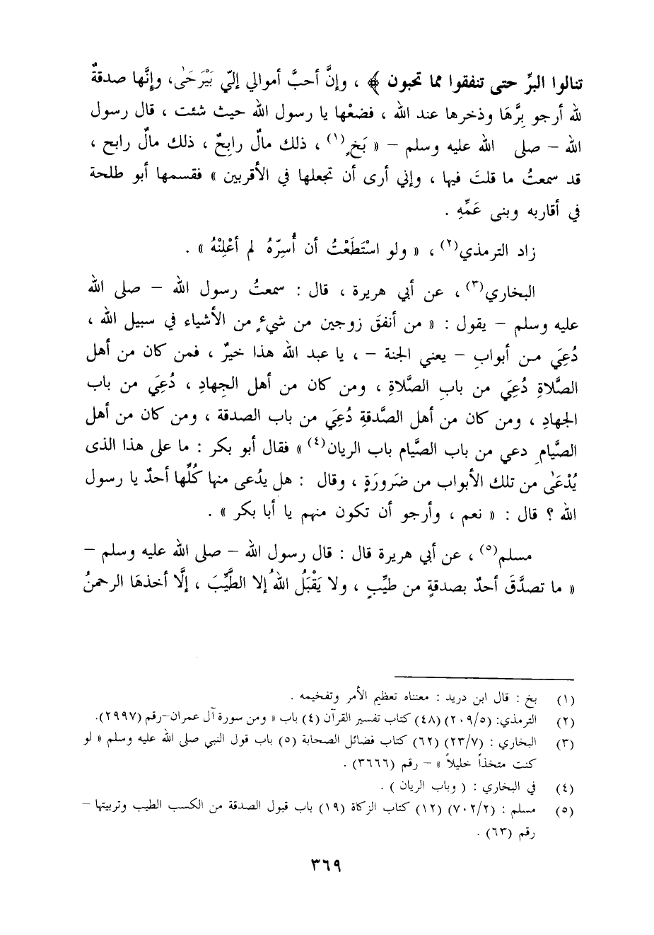 مسلم (¬5)، عن أبي هريرة قال: قال رسول الله - صلى الله عليه وسلم - "ما تصدَّقَ أحدٌ بصدقةٍ من طيِّبٍ، ولا يَقْبَلُ اللهُ إلا الطيبَ، إلَّا أخذهَا الرحمنُ