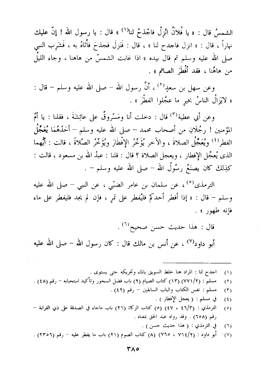 (¬7) أبو داود: (2/ 764، 765) (8) كتاب الصوم (21) باب ما يفطر عليه - رقم (2356).