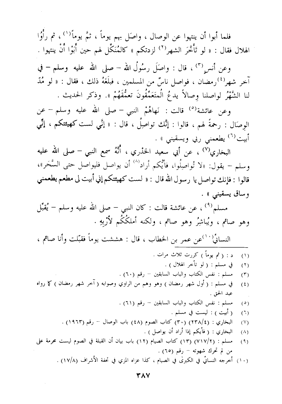 (¬8) البخاري: (فأيكم إذا أراد أن يواصل).