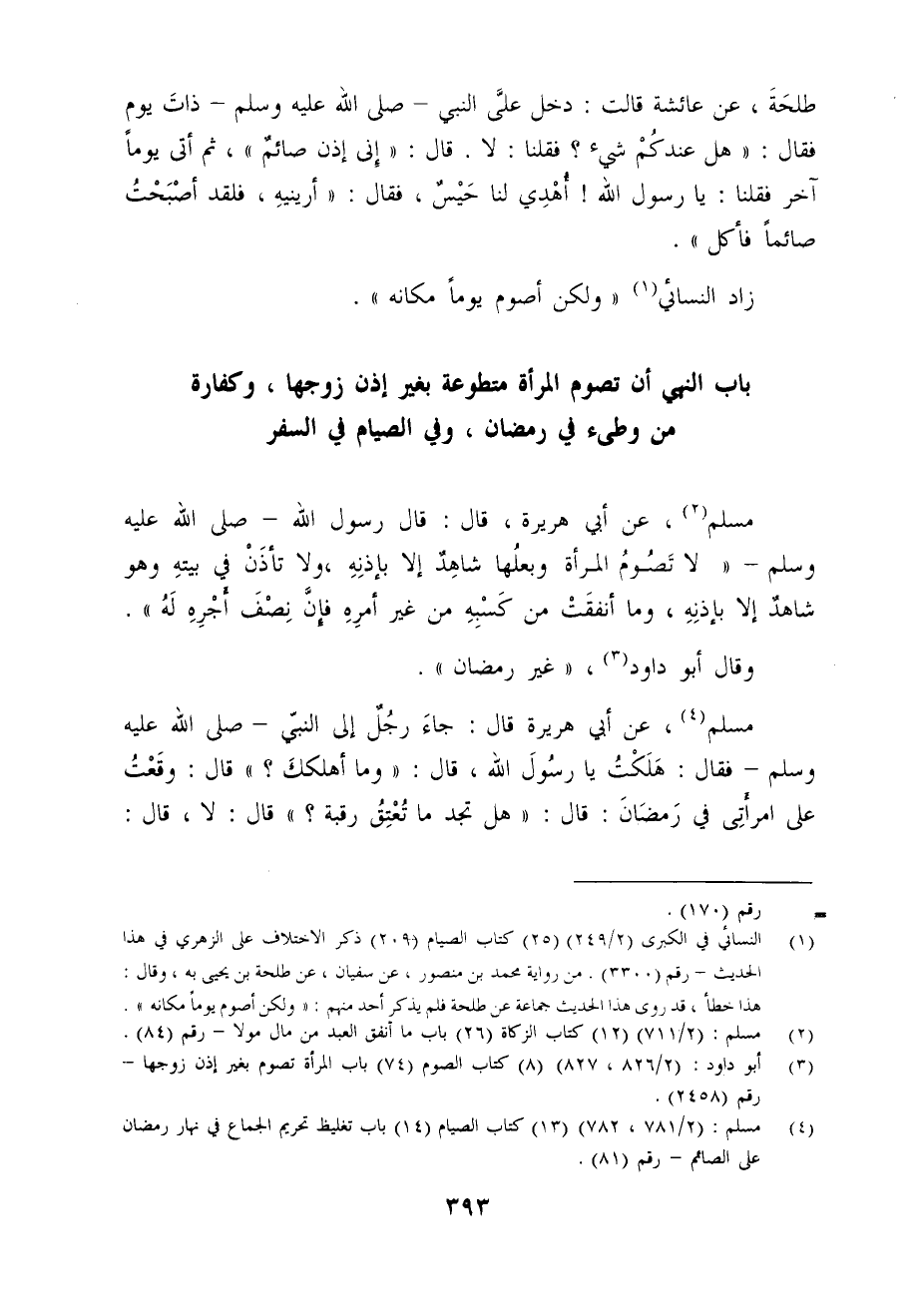 (¬3) أبو داود: (2/ 826، 827) (8) كتاب الصوم (74) باب المرأة تصوم بغير إذن زوجها - رقم (2458).