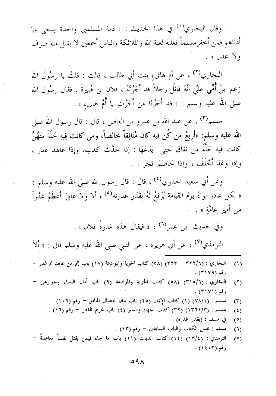 (¬1) البخاري: (6/ 322 - 323) (58) كتاب الجزية والموادعة (17) باب إثم من عاهد ثم غدر - رقم (3179).