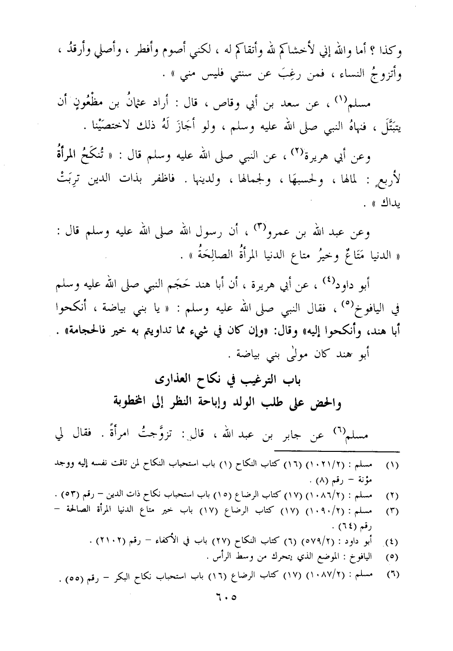 مسلم (¬6) عن جابر بن عبد الله، قال: تزوَّجتُ امرأةً. فقال لي