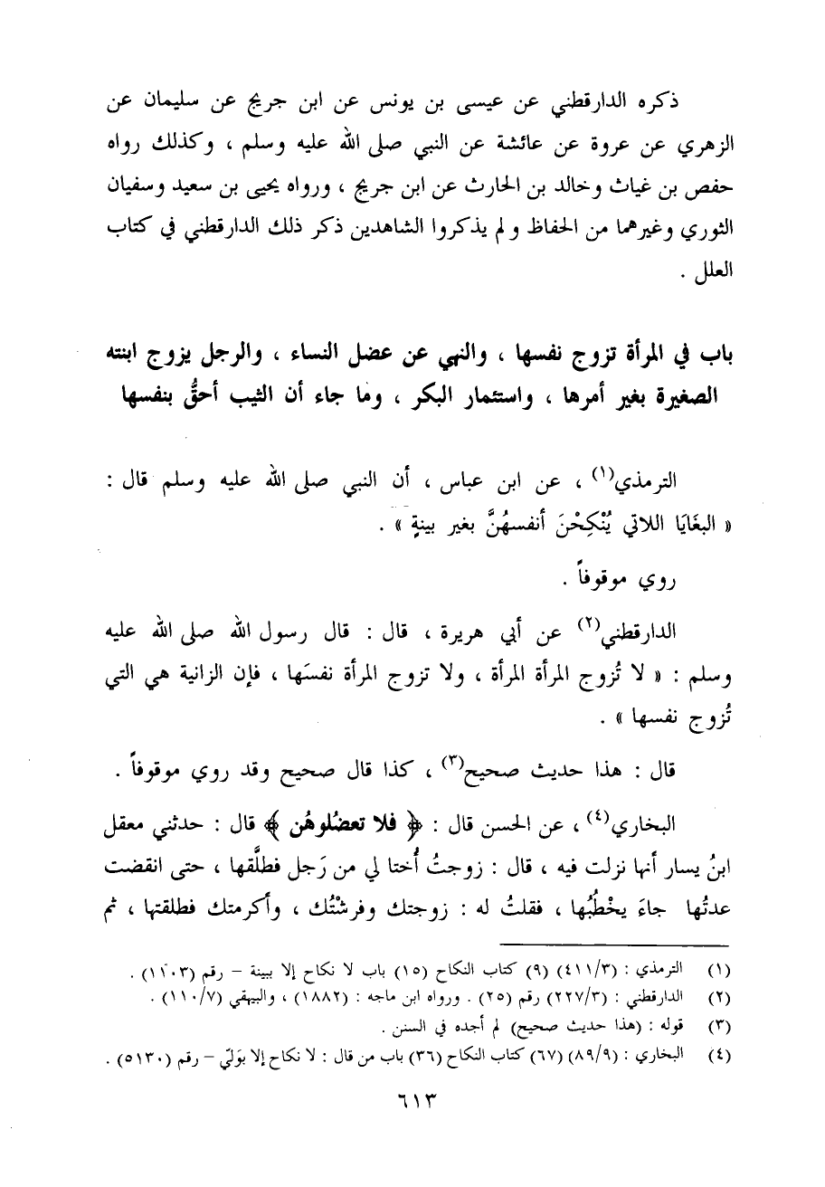 (¬4) البخاري: (9/ 89) (67) كتاب النكاح (36) باب من قال: لا نكاح إلا بوَلي - رقم (5130).