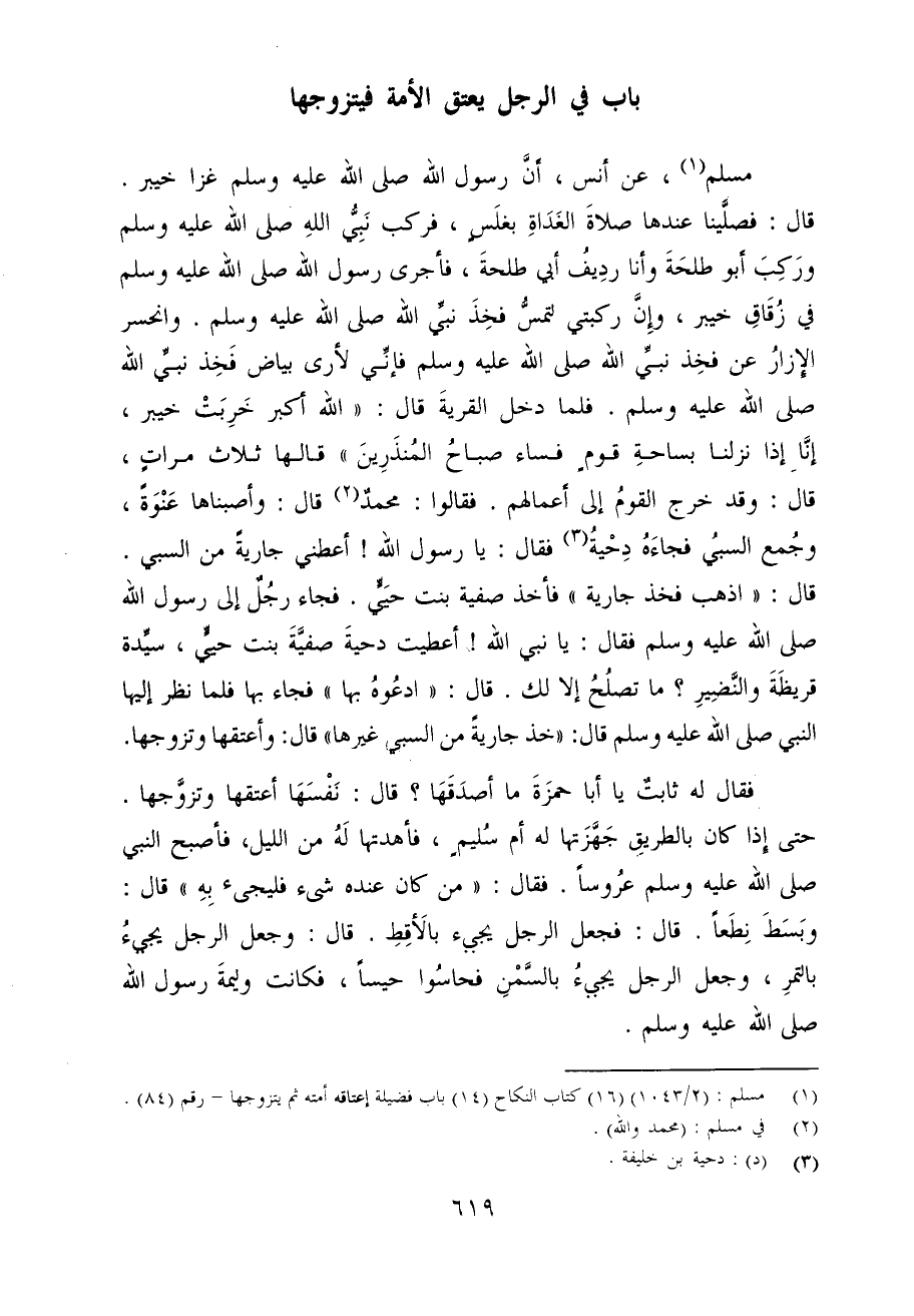 (¬1) (2/ 1043) (16) كتاب النكاح (14) باب فضيلة إعتاقه أمته ثم يتزوجها - رقم (84).