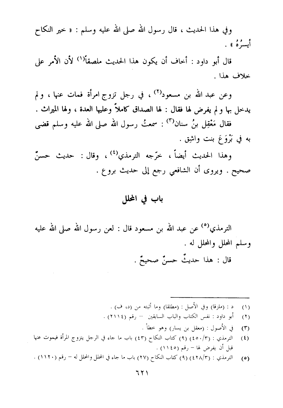 (¬5) الترمذي: (3/ 428) (9) كتاب النكاح (27) باب ما جاء في المحلل والمحلل له - رقم (1120)