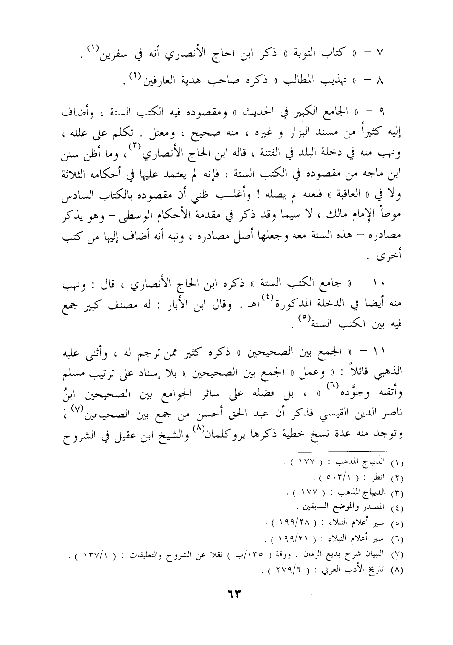 7 - "كتاب التوبة" ذكر ابن الحاج الأنصاري أنه في سفرين (¬1).