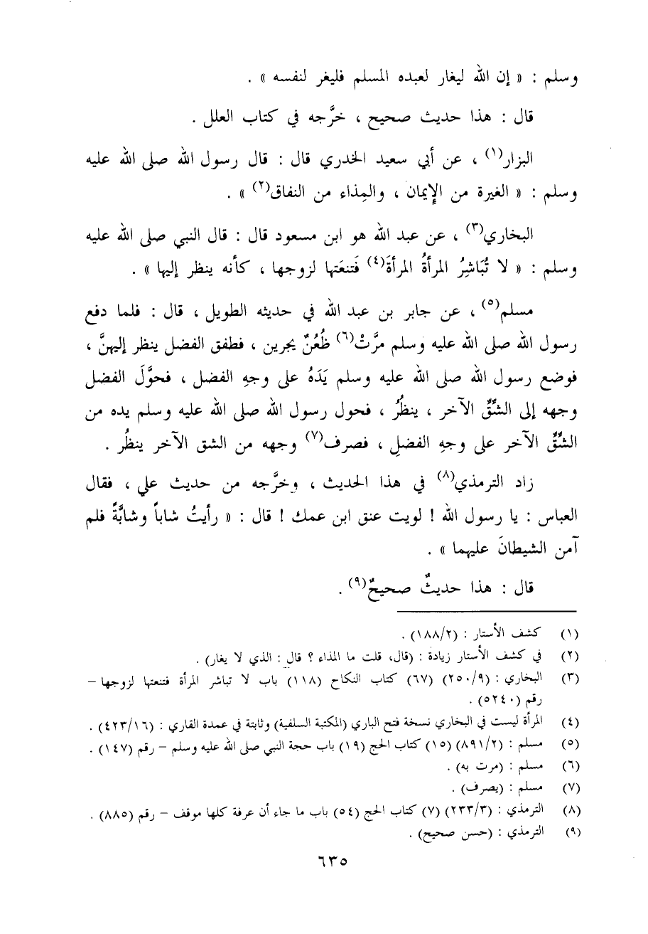 مسلم (¬5)، عن جابر بن عبد الله في حديثه الطويل، قال: فلما دفع رسول الله - صلى الله عليه وسلم - مرَّتْ (¬6) ظُعُنٌ يجرين، فطفق الفضل ينظر إليهنَّ، فوضع رسول الله - صلى الله عليه وسلم - يَدَهُ على وجهِ الفضل، فحوَّلَ الفضل وجهه إلى الشِّقِّ الآخر، ينظُرُ، فحول رسول الله - صلى الله عليه وسلم - يده من الشِّقِّ الآخر على وجهِ الفضلِ، فصرف (¬7) وجهه من الشق الآخر ينظرُ.