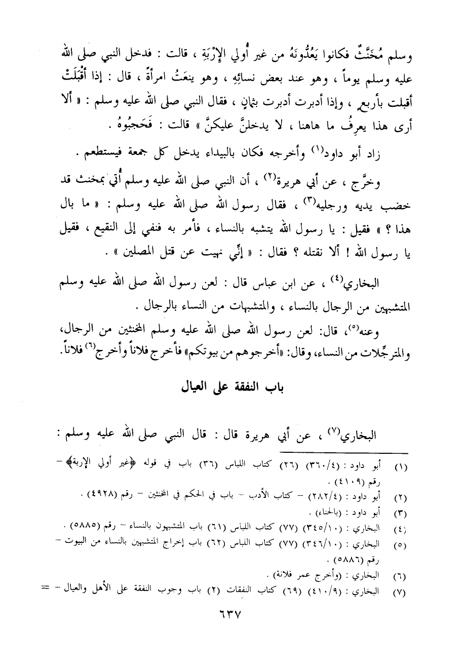 (¬4) البخاري: (10/ 345) (77) كتاب اللباس (61) باب المتشبهون بالنساء - رقم (5885).