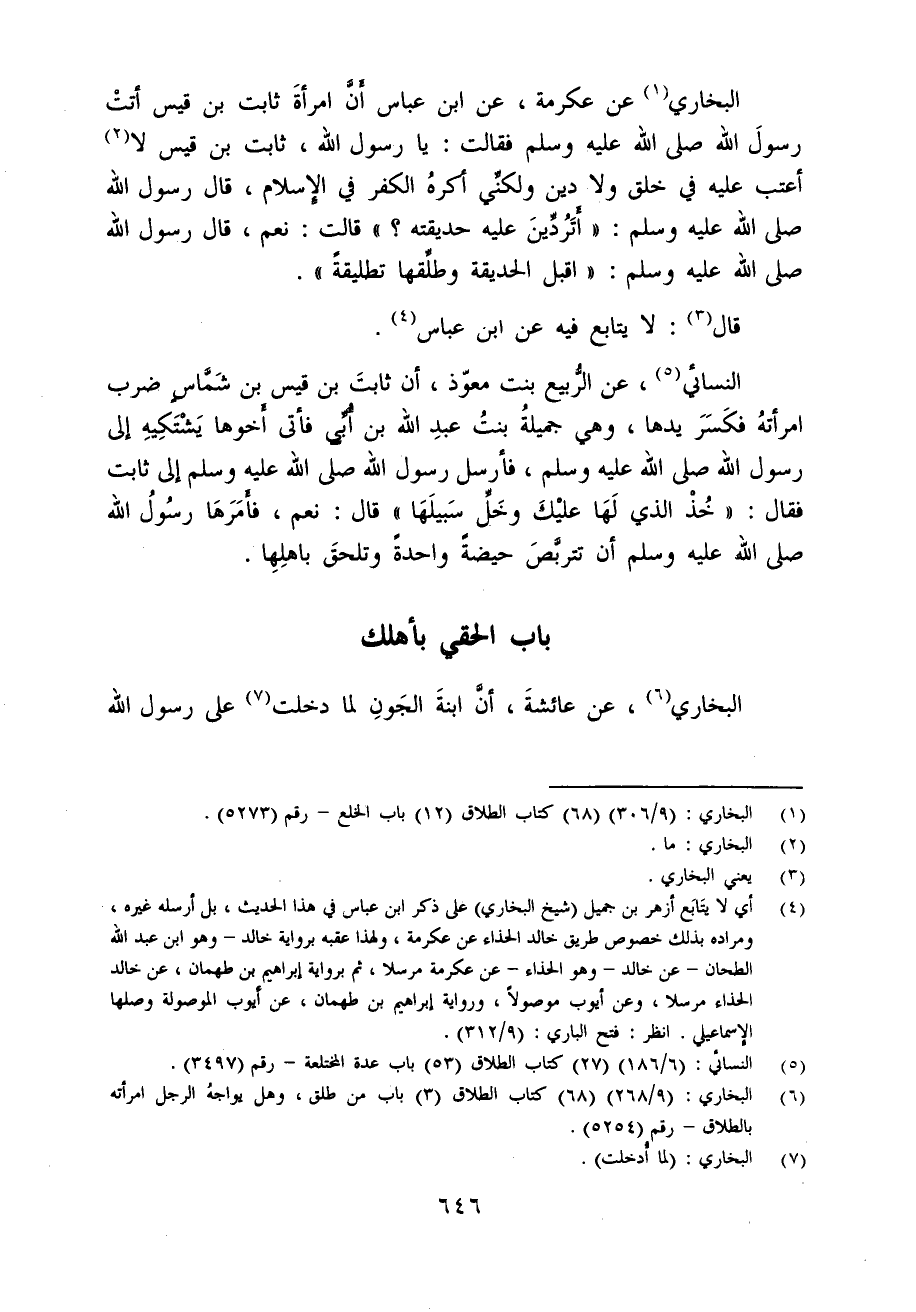 (¬6) البخاري: (9/ 268) (68) كتاب الطلاق (3) باب من طلق، وهل يواجهُ الرجل امرأته بالطلاق - رقم (5254).