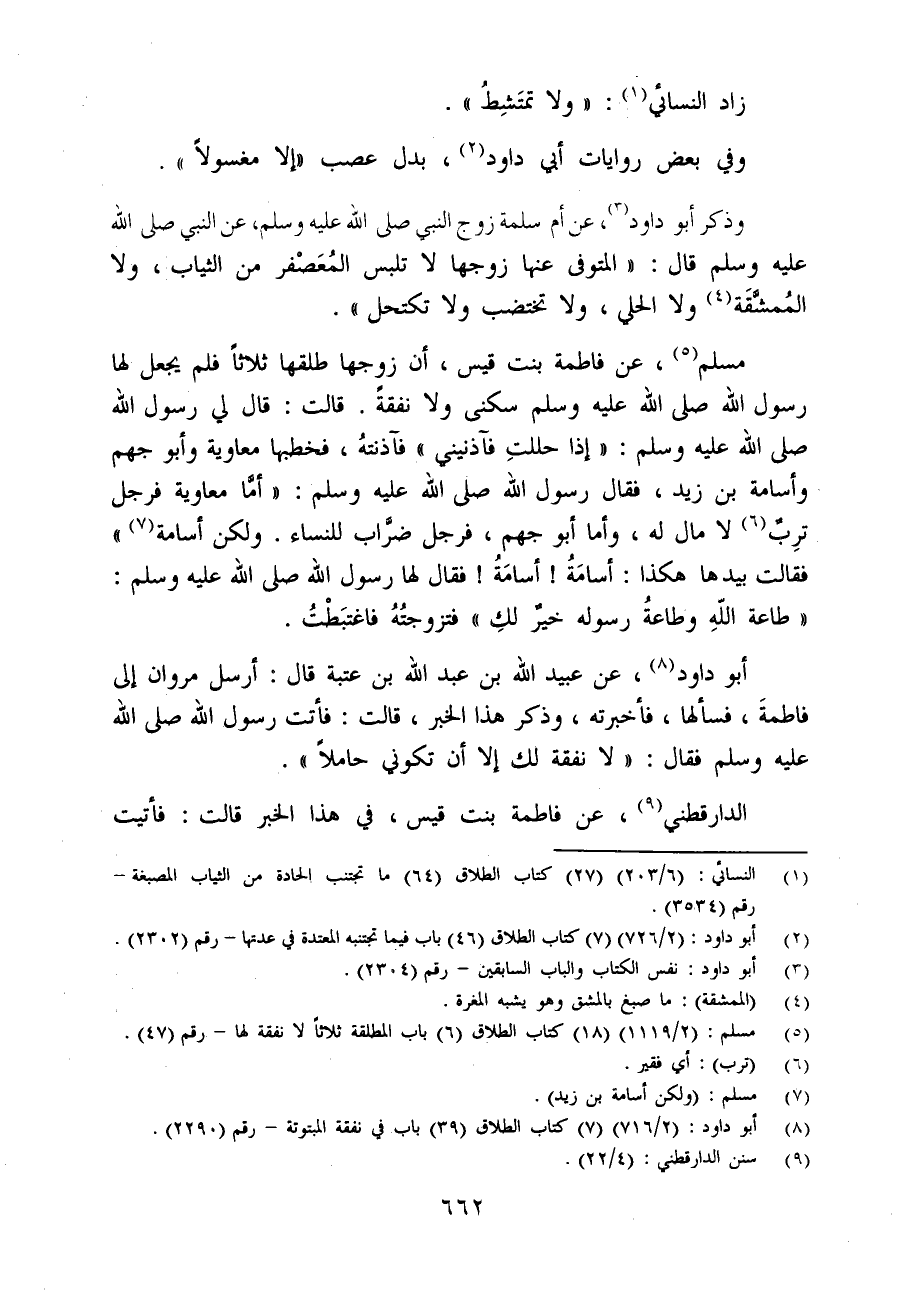 (¬2) أبو داود: (2/ 726) (7) كتاب الطلاق (46) باب فيما تجتنبه المعتدة في عدتها - رقم (2302).