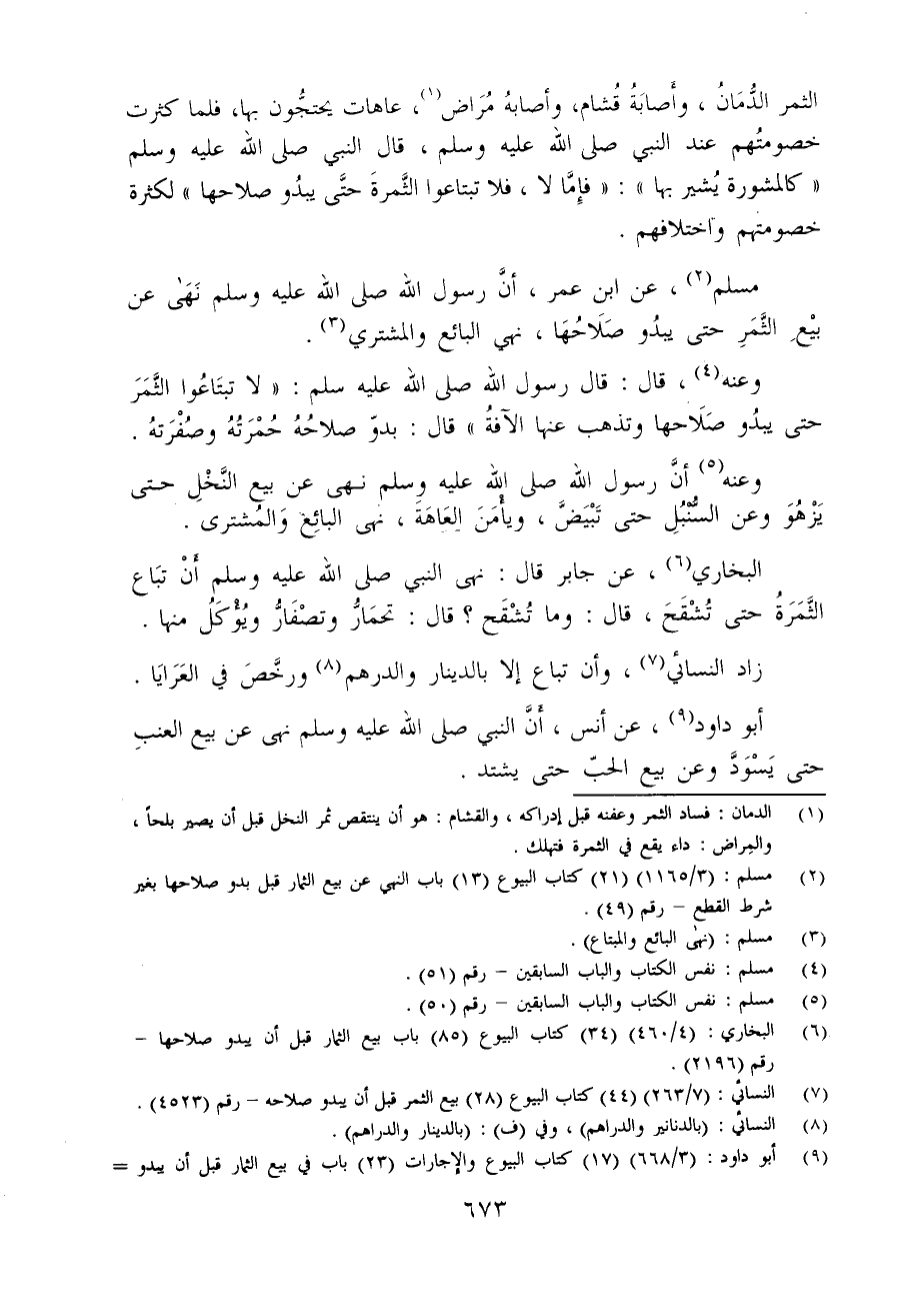 (¬6) البخاري: (4/ 460) (34) كتاب البيوع (85) باب بيع الثمار قبل أن يبدو صلاحها - رقم (2196).