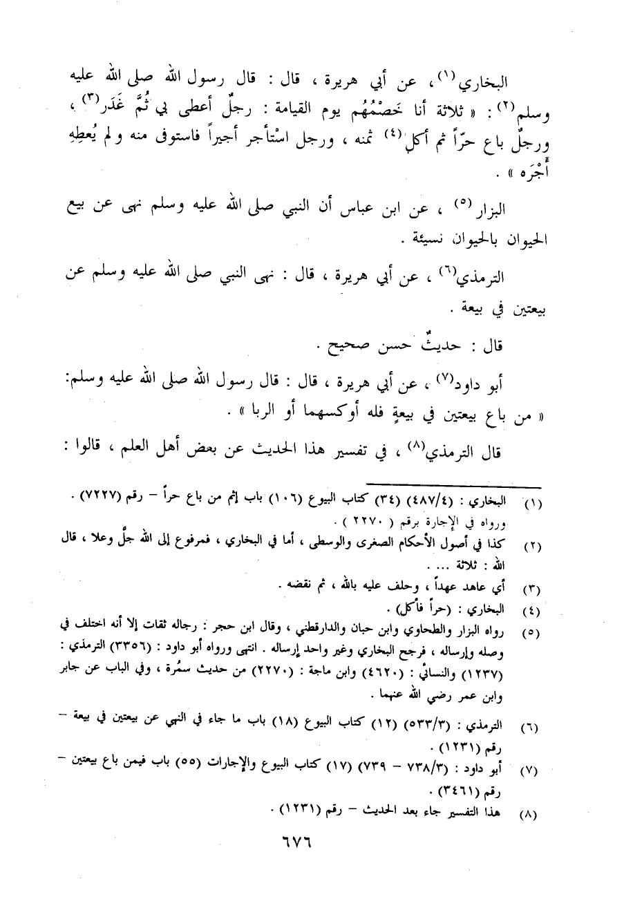 (¬7) أبو داود: (3/ 738 - 739) (17) كتاب البيوع والإجارات (55) باب فيمن باع بيعتين - رقم (3461).