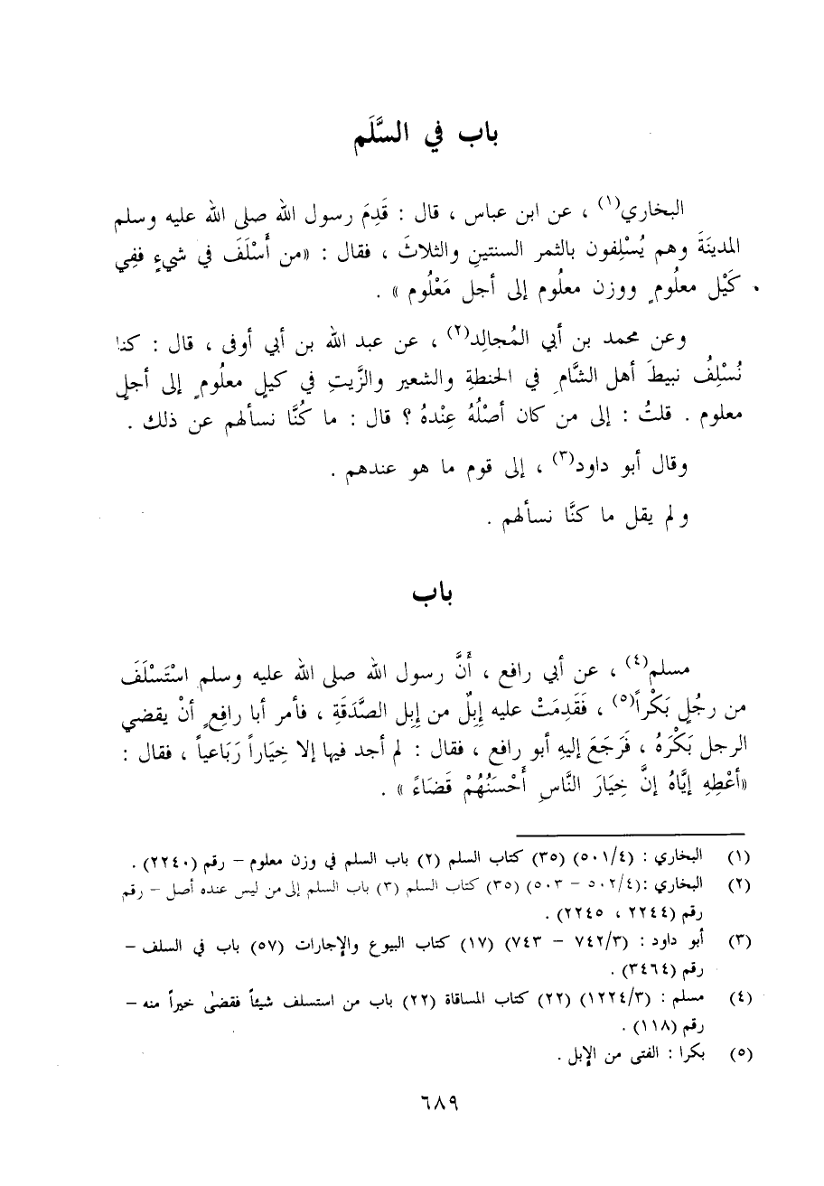 (¬3) أبو داود: (3/ 742 - 743) (17) كتاب البيوع والإجارات (57) باب في السلف - رقم (3464).