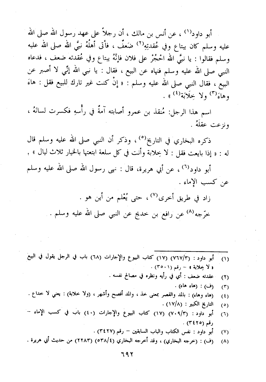 (¬1) أبو داود: (3/ 767) (17) كتاب البيوع والإجارات (68) باب في الرجل يقول في البيع "لا خِلابة" - رقم (3501).