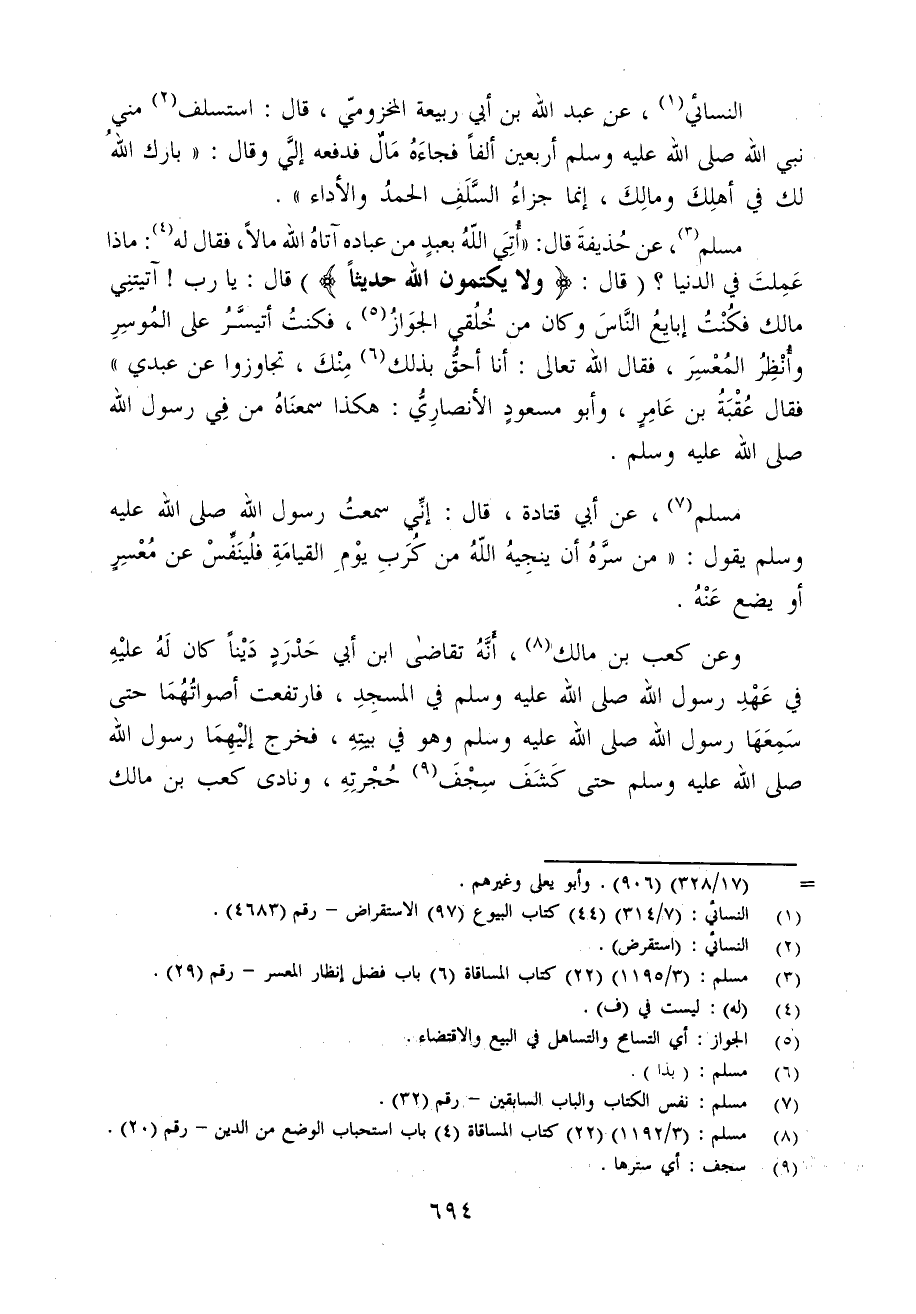 (¬3) مسلم: (3/ 1195) (22) كتاب المساقاة (6) باب فضل إنظار المعسر - رقم (29).