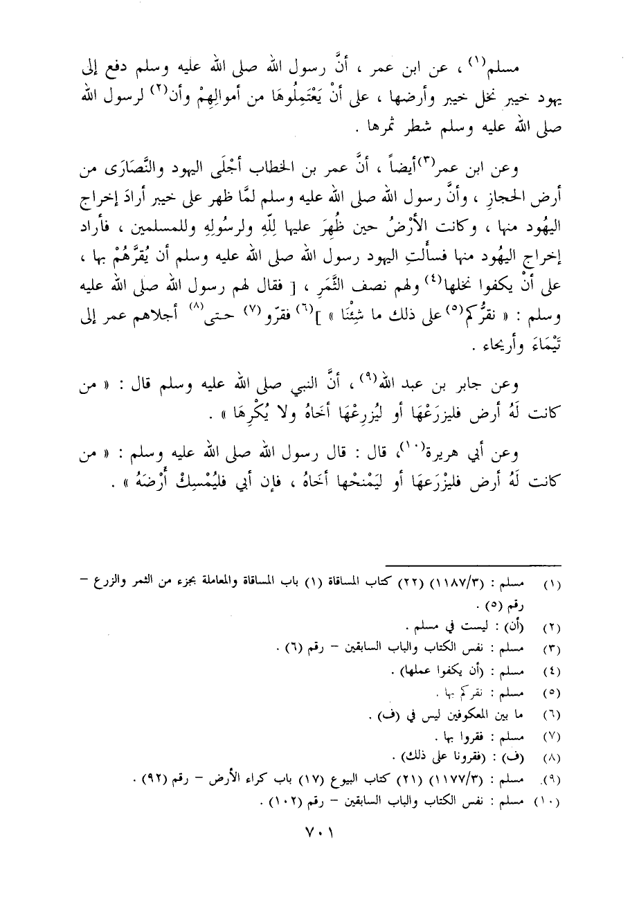 (¬1) مسلم: (3/ 1187) (22) كتاب المساقاة (1) باب المساقاة والمعاملة بجزء من الثمر والزرع - رقم (5).