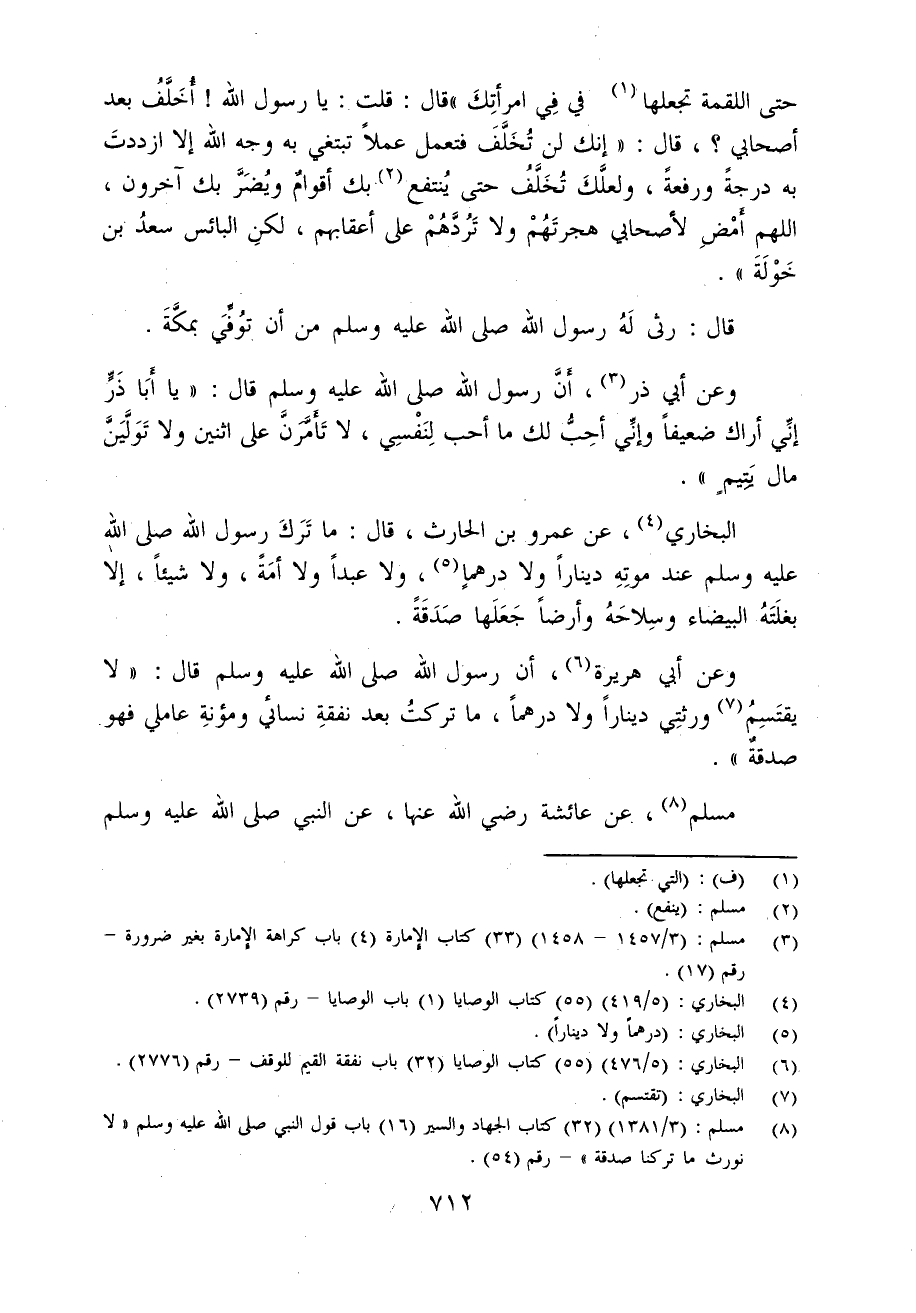 (¬8) مسلم: (3/ 1381) (32) كتاب الجهاد والسير (16) باب قول النبي - صلى الله عليه وسلم - "لا نورث ما تركنا صدقة" - رقم (54).