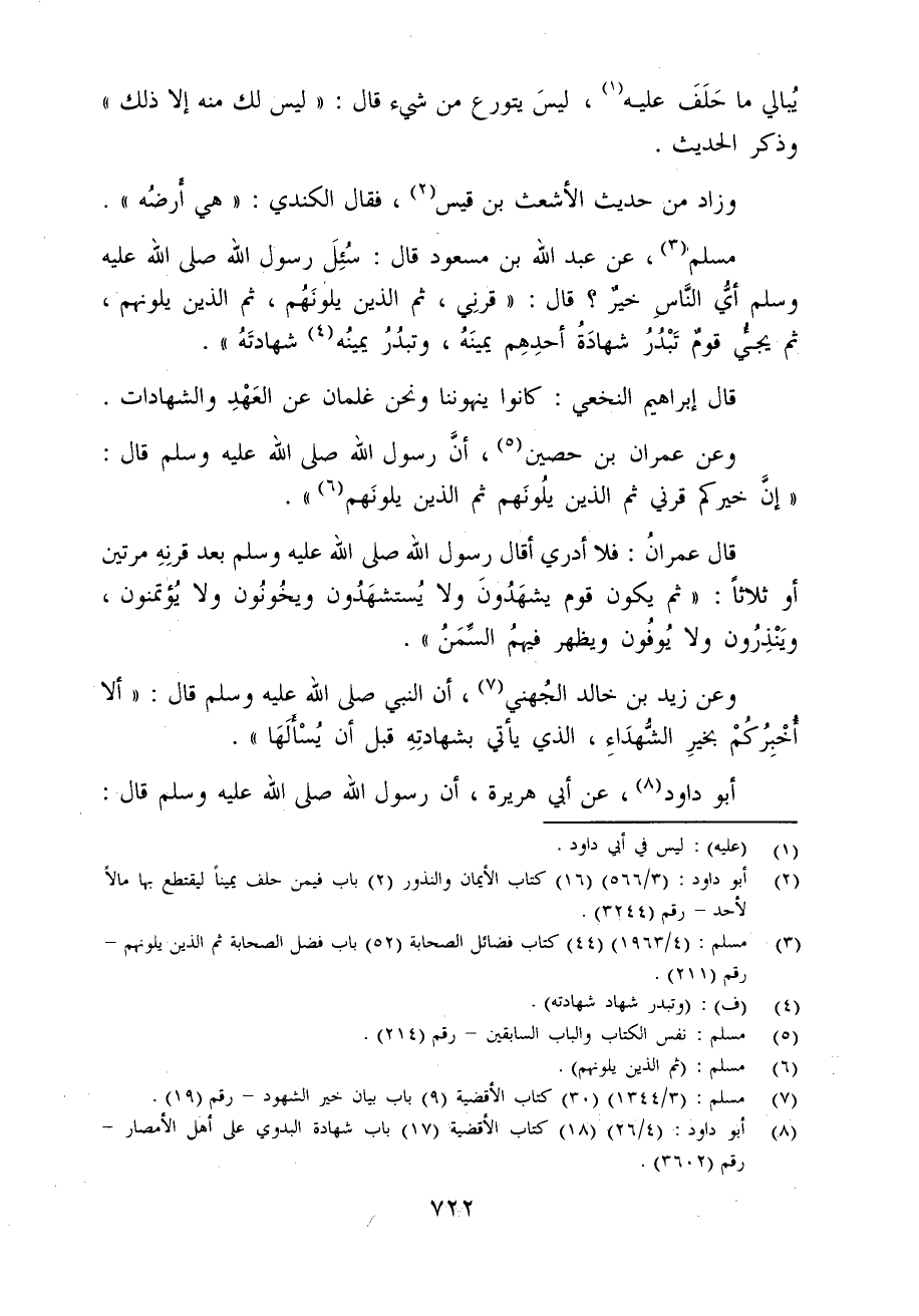 (¬7) مسلم: (3/ 1344) (30) كتاب الأقضية (9) باب بيان خير الشهود - رقم (19).