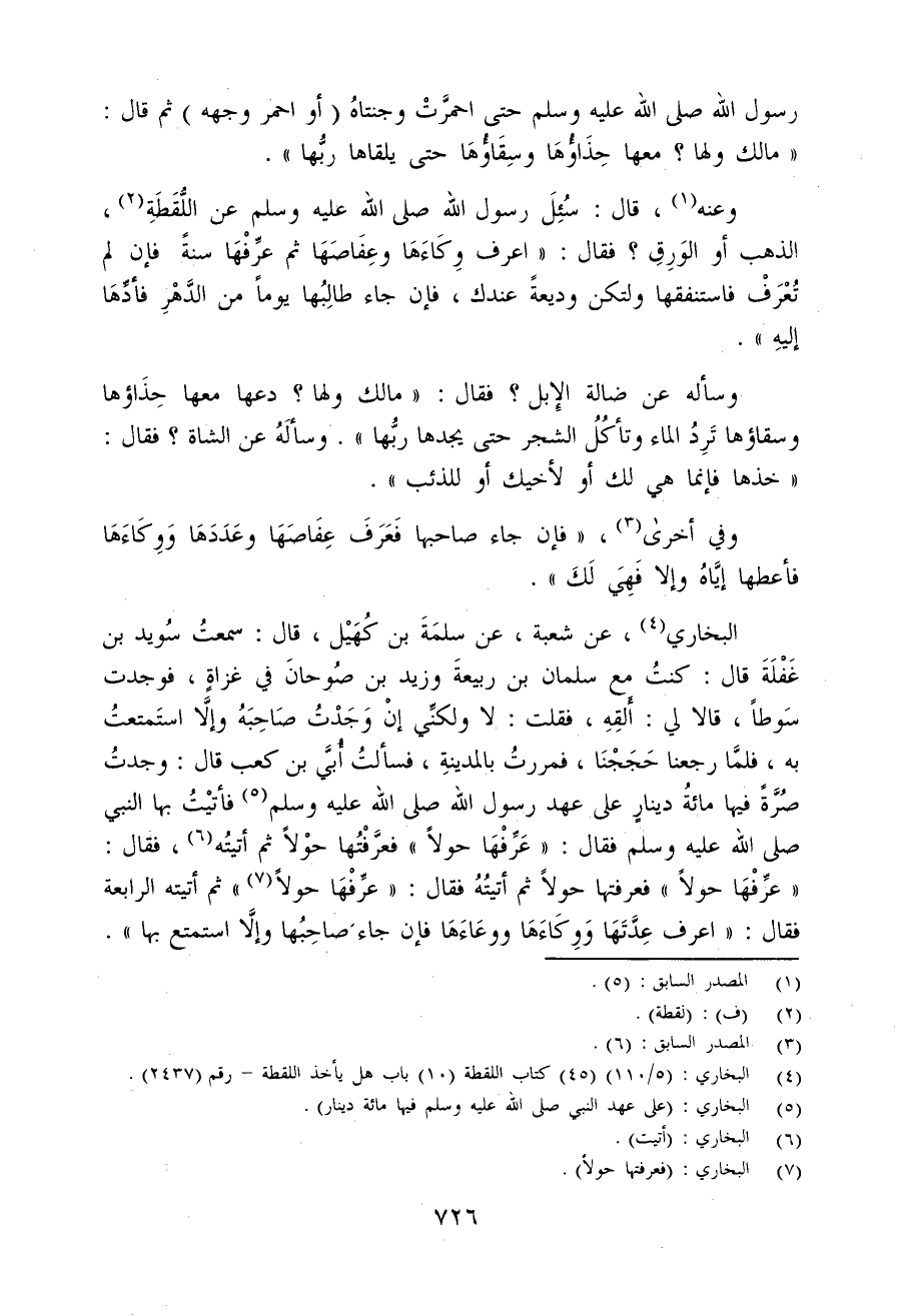 (¬4) البخاري: (5/ 110) (45) كتاب اللقطة (10) باب هل يأخذ اللقطة - رقم (2437).