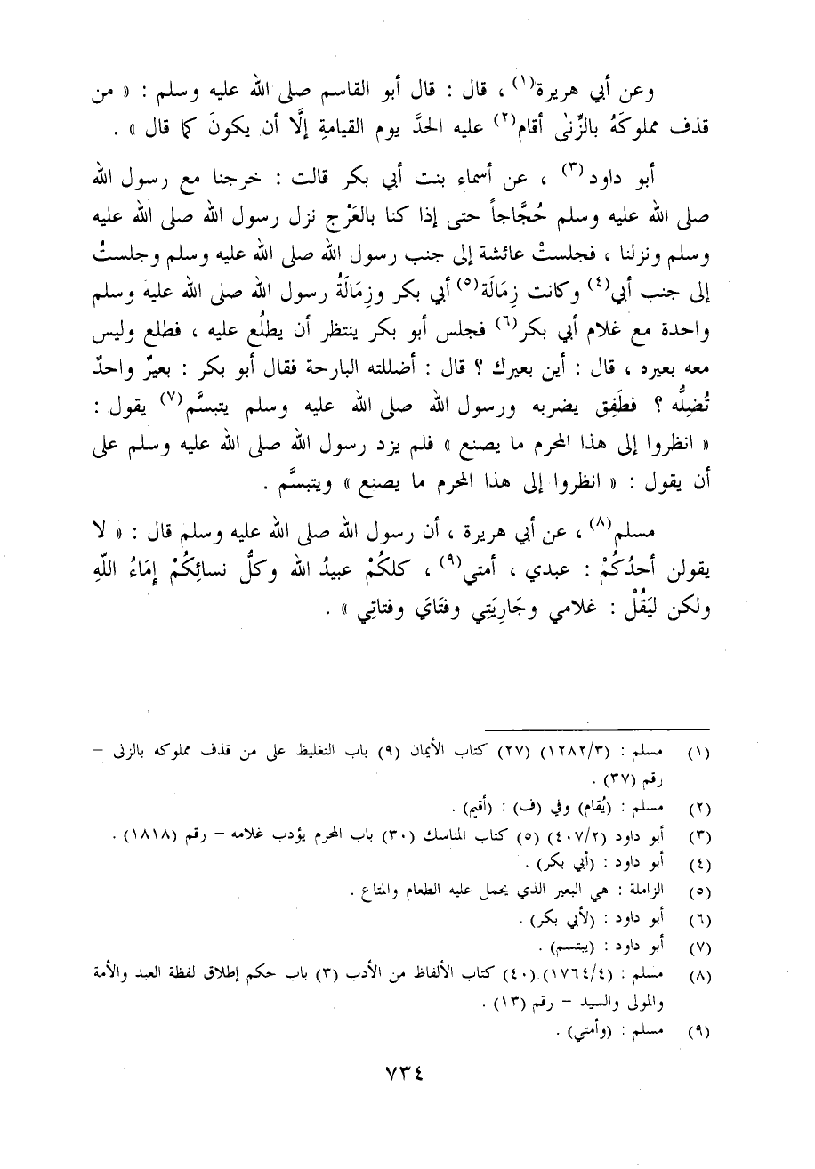 (¬1) مسلم: (3/ 1282) (27) كتاب الأيمان (9) باب التغليظ على من قذف مملوكه بالزني - رقم (37).