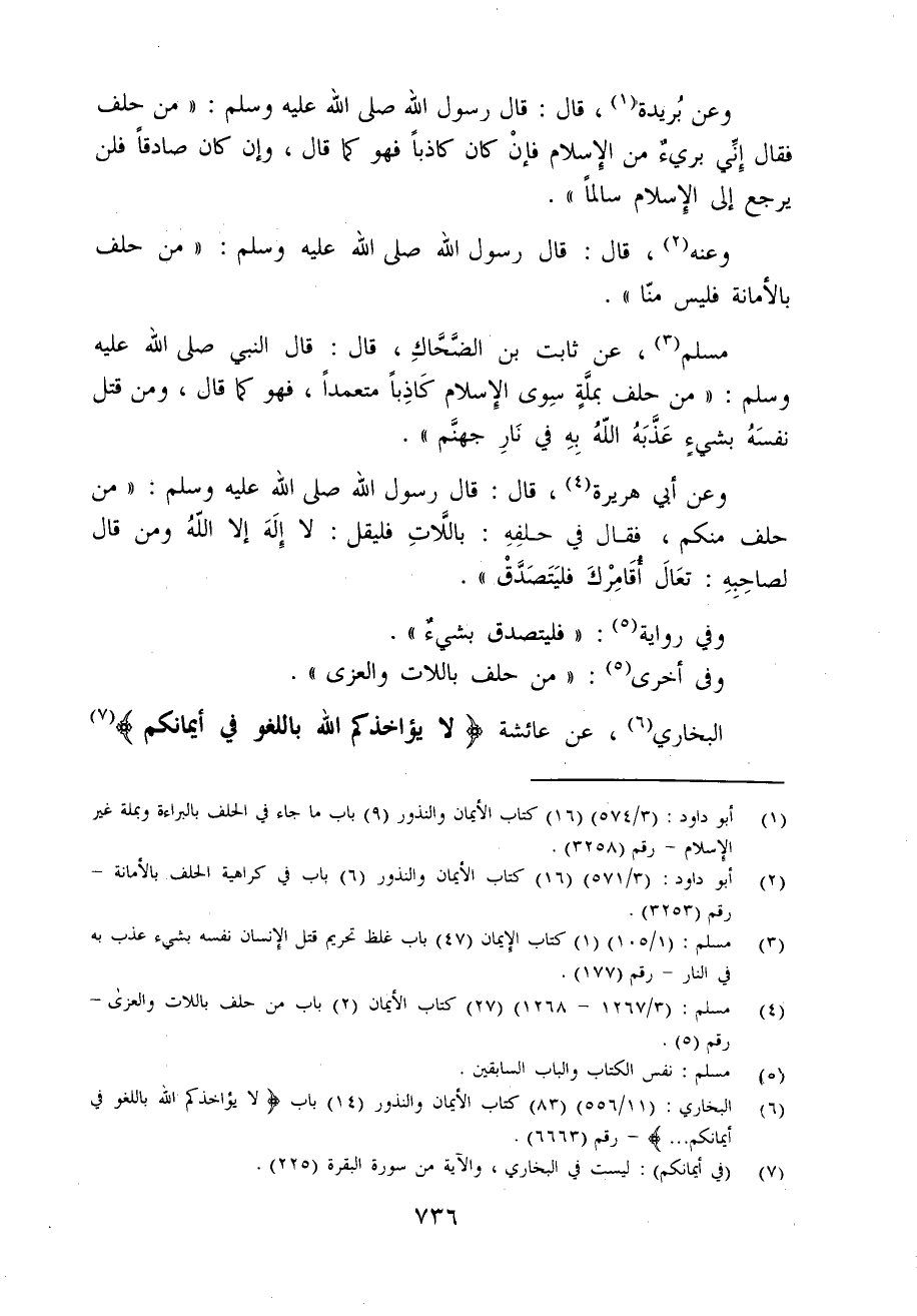 (¬6) البخاري: (11/ 556) (83) كتاب الأيمان والنذور (14) باب {لَا يُؤَاخِذُكُمُ اللَّهُ بِاللَّغْوِ فِي أَيْمَانِكُمْ ...} - رقم (6663).